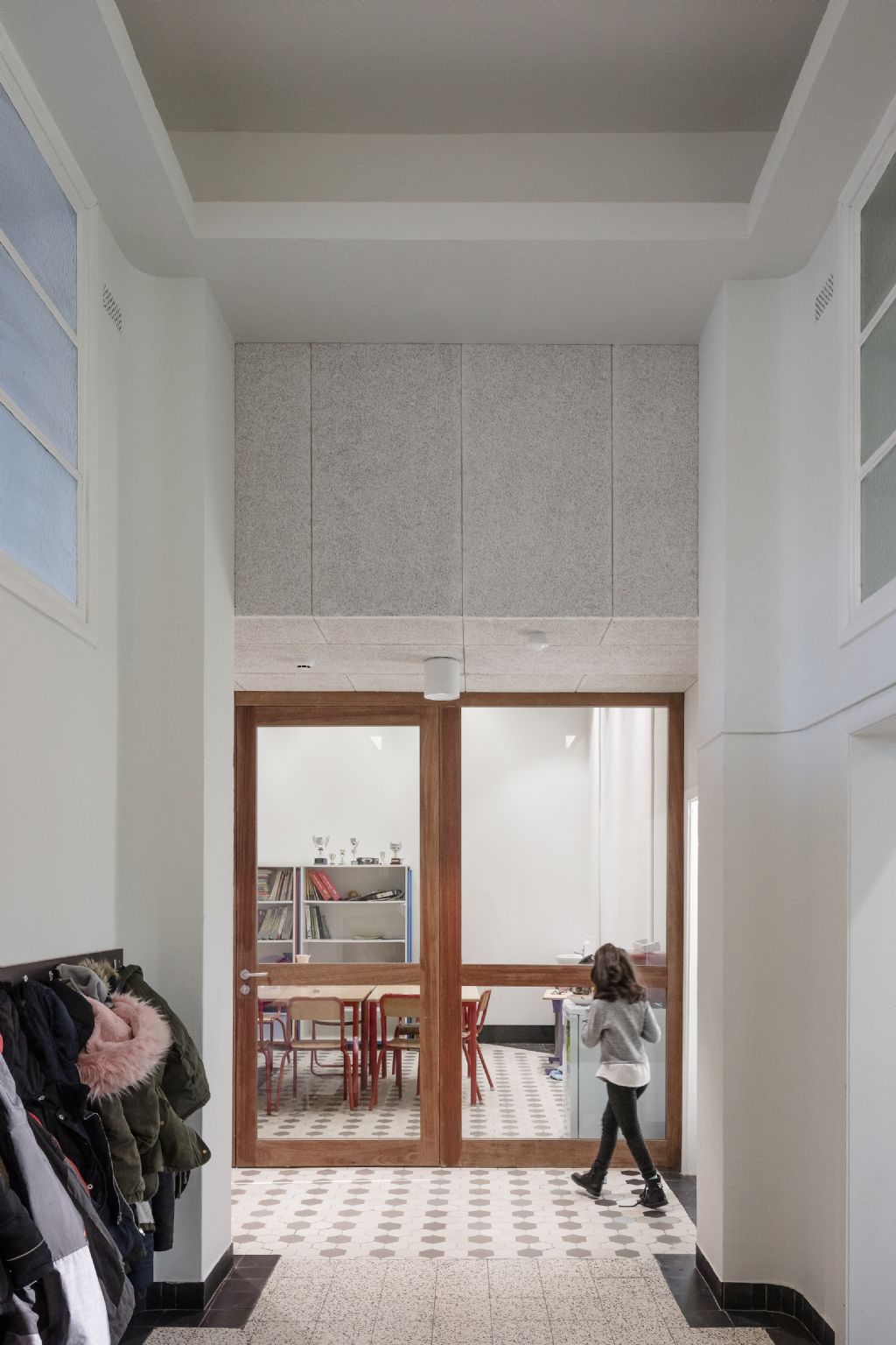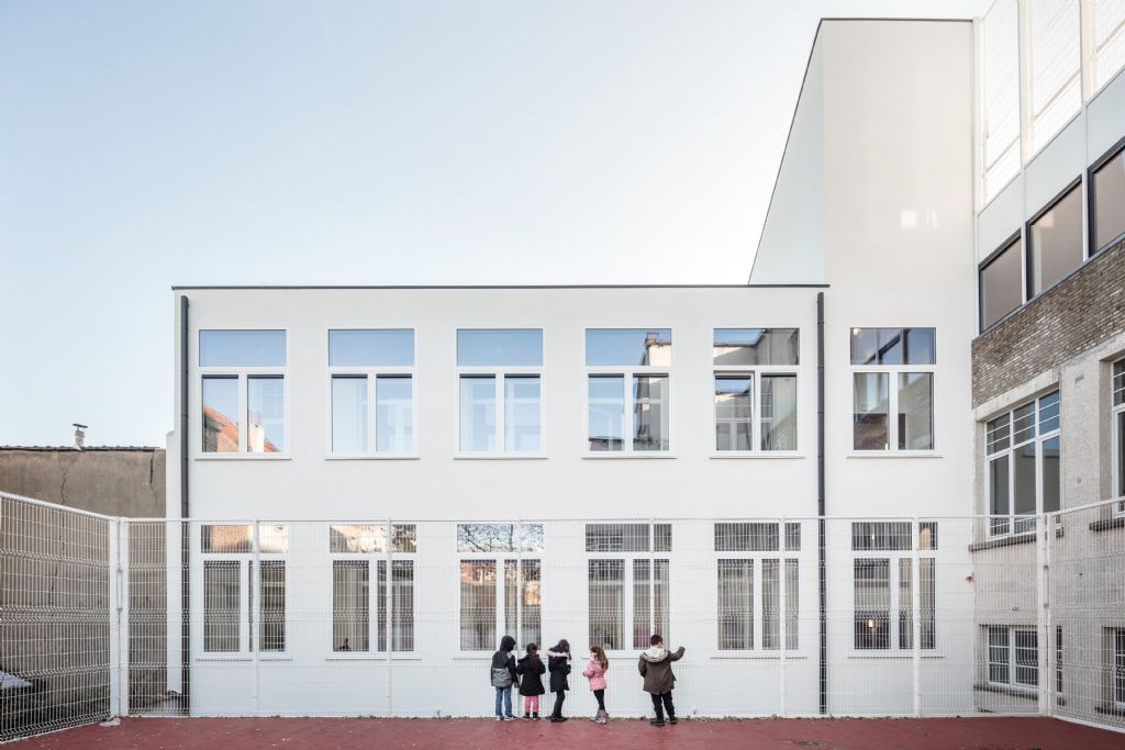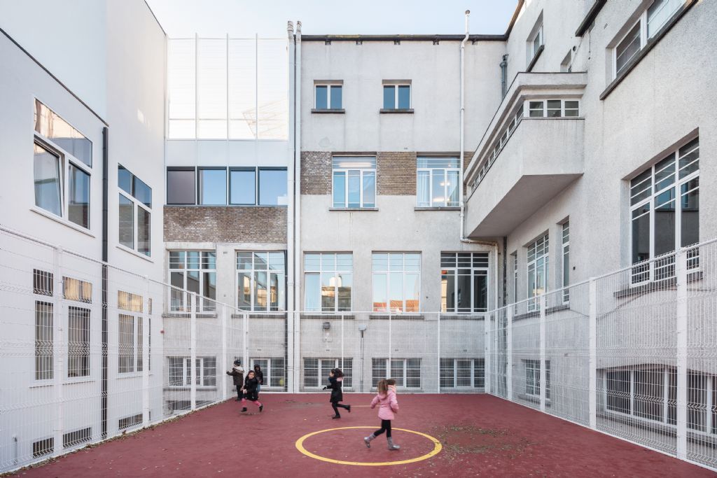 Label Architecture voorzag een uitbreiding met vier nieuwe klassen, nieuwe speelplaatsen en een optimalisatie van de oostelijke vleugel door het toevoegen van een nieuwe gevel.
