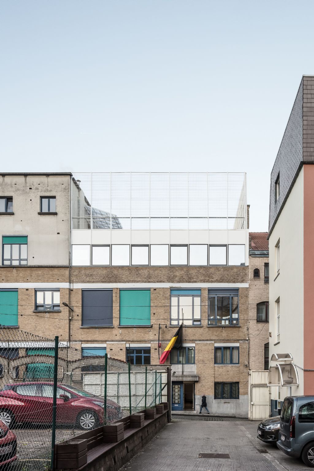 Label Architecture heeft de gemeentelijke basisschool Arc-en-Ciel en het kinderdagverblijf in Sint-Joost-ten-Node uitgebreid en gerenoveerd. De school is gelegen in de meest dense gemeente van België. De uitdaging was dan ook om een goed evenwicht te bewaren tussen de open en bebouwde ruimte. De nieuwe toevoegingen werden zo geschikt om de kwaliteit van de buitenruimte te garanderen.