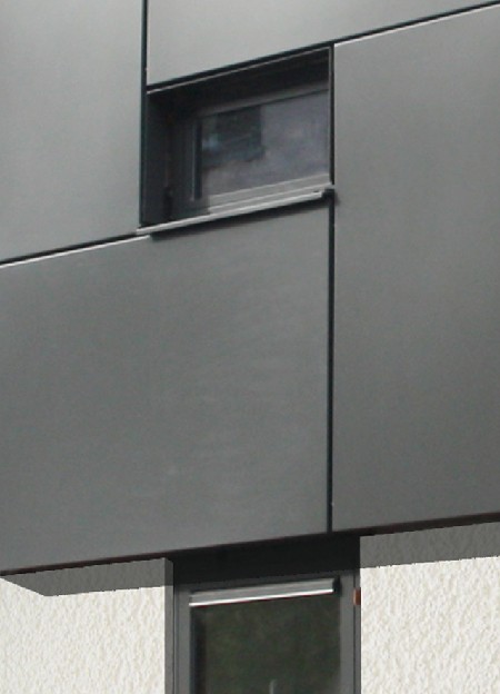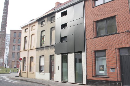 De voorgevel respecteert het ritme van de 19de eeuwse straat en is eigentijds opgevat met een verdiepinghoge plint en een uit de rij springende speelse aluminium cassettegevel.