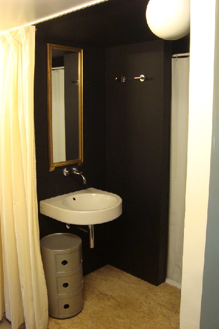 De circulatieruimte gaat over in het leefgedeelte. Deze circulatiezone wordt geaccentueerd door het volume waarin diverse functies zitten uit te werken met donkere fineerplaten. Hierdoor is dit donker volume sterk aanwezig in de ruimte.
