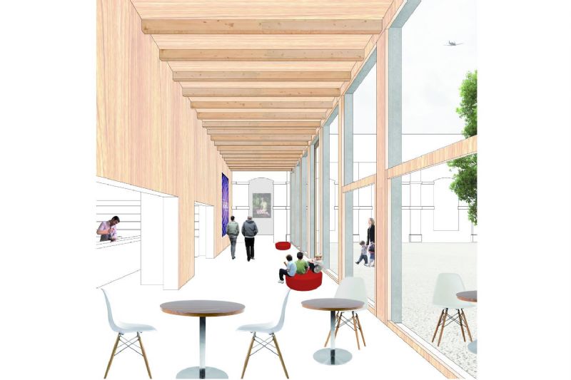 Een nieuwe circulatiezone rijgt de vier verschillende gebouwen aan elkaar en versmelt ze tot één museum. In deze nieuwe circulatiezone bevinden zich onder meer de inkomhal, de ticktbalie, de bookshop en een nieuw grand café. Door de zorgvuldige inplanting van een nieuw toegangsgebouw zijn de tijdelijke en de permanente tentoonstellingsruimtes flexibel compartimenteerbaar.