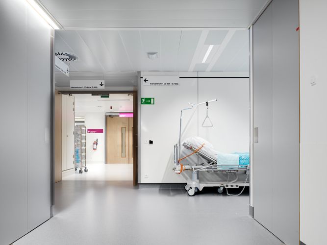 Ontwikkeling troef bij het Universitair Ziekenhuis Leuven. Uitbreidingsprojecten schieten er als paddenstoelen uit de grond. Zo ook nieuwbouwfase 4A, de thuishaven van de kritische diensten zoals spoedgevallen en intensieve zorgen. THV AR-TE dJGA STABO dokterde de plannen uit en volgde de volledige uitvoering van de werken op. LCC-Plafonds werd bij uitvoering gekozen als leverancier van plafondpanelen. Speciaal voor dit project ontwikkelde het bedrijf uit Wilrijk de XL 300-panelen met Omega Hook W-randprofiel. Genisol uit Gent installeerde de panelen.