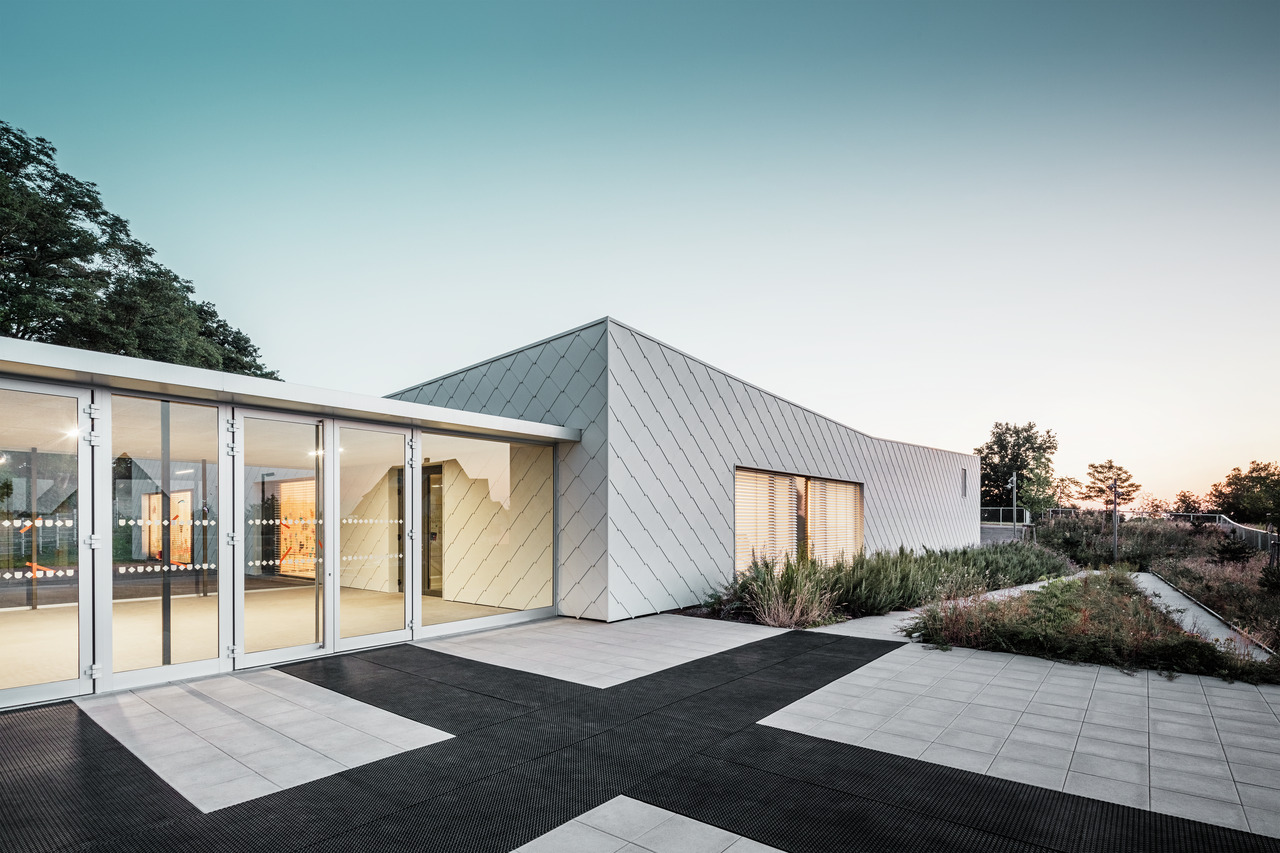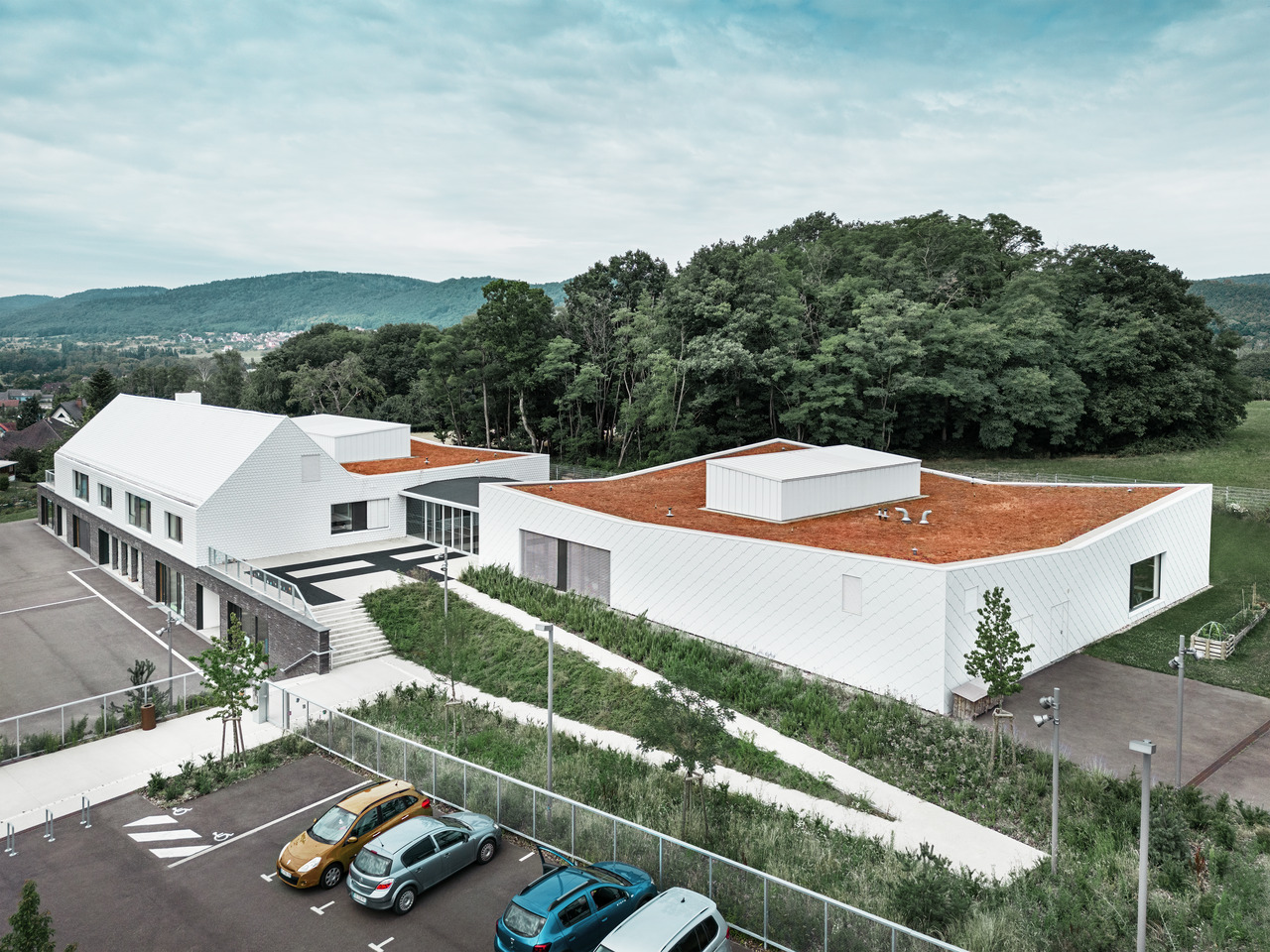 In de gemeente Otterswiller bij Straatsburg (Frankrijk) creëerden Dominique Cornaert en Philippe Dahan een plek voor naschoolse opvang, die samen met een basisschool en een kleuterschool een samenhangend geheel vormt. Het eenvoudige maar tegelijkertijd ongewone gebouw overtuigt door de evenwichtige mix van materialen en bijzondere details, waaronder de witte wandtegels van PREFA die de gevel bekleden.