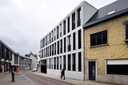 Niklaas Deboutte van architectenbureau META zal onder meer toelichting geven bij het appartementsgebouw Oosterlinck in Wetteren. Daarin is de gevel opgebouwd uit een schakeling van identieke, geprefabriceerde betonnen elementen die op verschillende manieren in het gevelvlak worden geplaatst. De ramen tussen de verticale elementen zijn identiek maar de veranderlijke positie van de asymmetrische betonelementen zorgt voor een variabele tussenafstand en schaduwwerking: een subtiele variatie die de strakke betonnen geleding nuanceert.