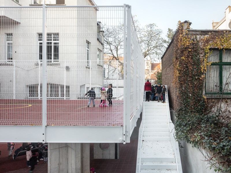 In het bijzonder heeft Label zich gespecialiseerd in de energetische renovatie van publieke gebouwen met een grote uitstraling. Zo renoveerden ze de Arc-en-Ciel school te Brussel op een innovatieve manier. In plaats van uit te breiden op een naburig perceel, stelden de architecten voor om het bestaande gebouw op te toppen. Vier nieuwe klaslokalen, twee grote buitenruimten en een reorganisatie van de circulatie in een bestaande vleugel vormen een helder antwoord binnen deze dicht bebouwde context.