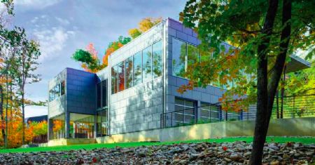 VMZINC is verkrijgbaar in een palet van natuurlijke tinten. De textuur en patina van het materiaal nodigen uit tot combinatie met tal van andere bouwmaterialen. 333 Gevelpaneel ST is een standaard gevelpaneel, dat zowel horizontaal als verticaal geplaatst worden voor de gewenste belijning. Dit paneel is verkrijgbaar als Quartz-zinc en Anthra-zinc, twee natuurlijke grijze kleuren die geverfd noch gelakt zijn.