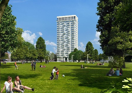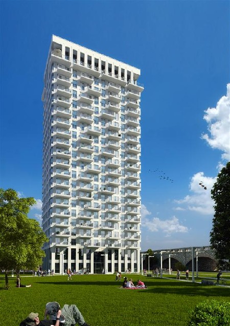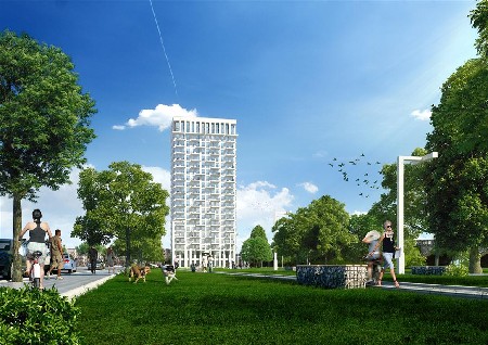 Het project is gesitueerd en heeft de toegang aan het Park Spoor Noord. De gevels betrachten een slank, verticaal en licht volume. In principe wordt de toren omwille van de toenemende hoogte van de ramen, lichter en transparanter in de hoogte. De opengewerkte hoeken versterken de slankheid maar geven vanuit de appartementen ook overhoeks zicht op het park, de haven en de binnenstad van Antwerpen.