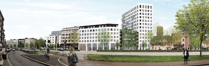 Het bouwblok werd naar de Noorse zeemanskerk toe afgeschuind en geeft daardoor ruimte aan de kerktoren en het achterliggende stadsplein. Tussen de twee bouwvolumes werd het groene centrale gedeelte verlaagd en open gewerkt. Deze zone sluit aan op het stedelijk groen van de nieuw aan te leggen Tunnelplaats. De gevels zijn uitgevoerd in een geglazuurde witte gevelsteen. De bronskleurige ramen zijn dieper geplaatst zodat de gevel meer warmte en expressie uitstraalt.