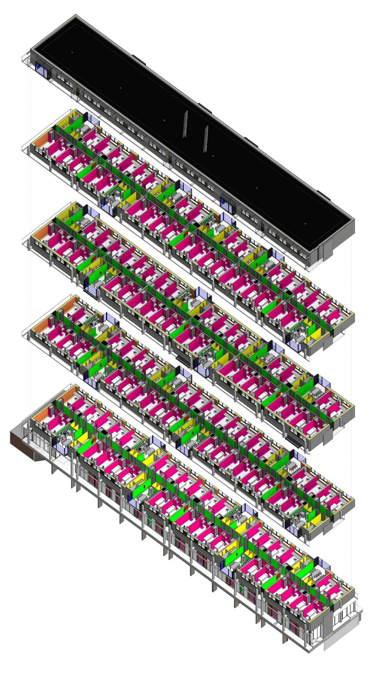 De keuze om dit project in BIM en Revit te realiseren was op z’n minst ambitieus te noemen. Het is immers een project van grote omvang, zowel in oppervlakte als in betrokken partijen. Het project bestaat uit verschillende gebouwdelen waarbij veel herhaling voorkomt. De verwachting was om de grote hoeveelheid gegevens en tekeningen met Revit beter onder controle te kunnen houden tijdens de immer aan wijzigingen onderhevige ontwerpfase.