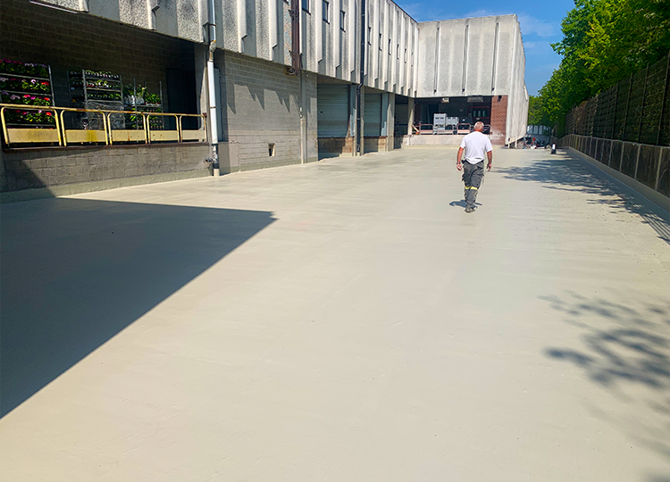 Het Triflex ProTect systeem is een elastisch, scheuroverbruggend en volledig gewapend afdichtingssysteem dat ook bij lage temperaturen flexibel blijft. Het is wortelbestendig en dampdoorlatend en bovendien verwerkbaar vanaf 0°C. Na het aanbrengen van de nieuwe afdichting, werd de complete oppervlakte nog voorzien van een nieuwe betonplaat. Dankzij de vernieuwing is de ondergrondse stockageruimte weer voor honderd procent beschermd tegen insijpelend vocht en oogt de los- en laadkade weer fris en netjes.