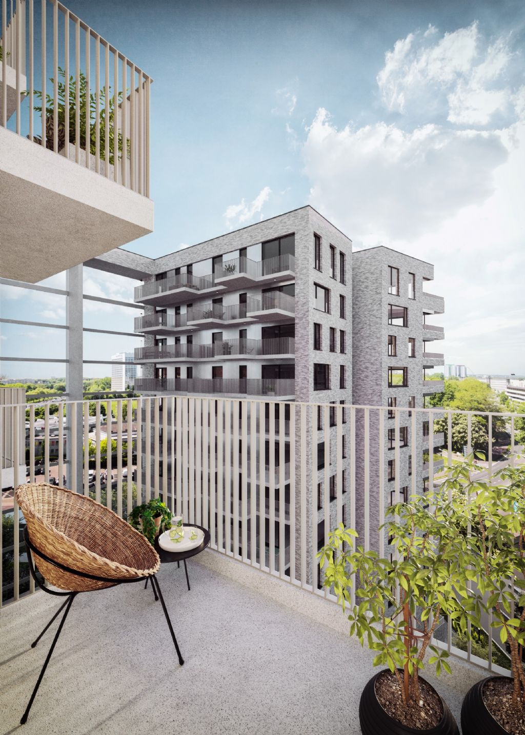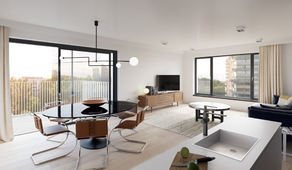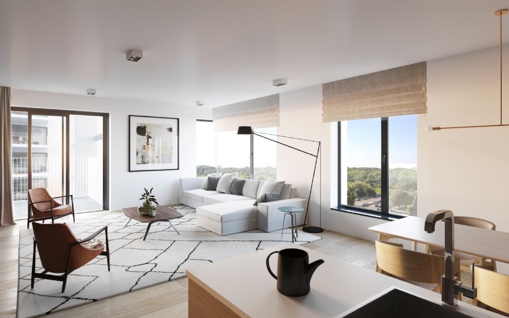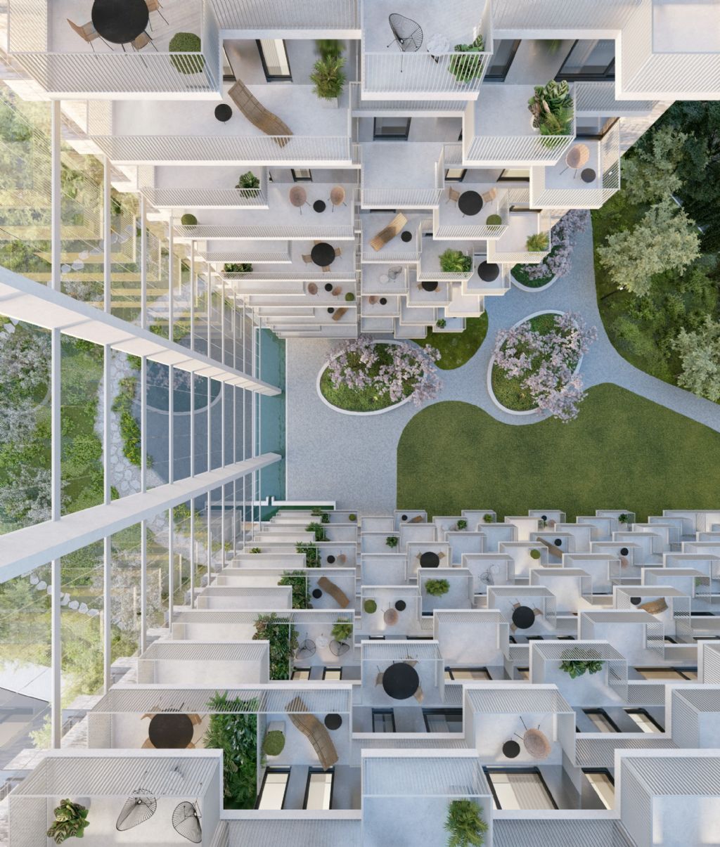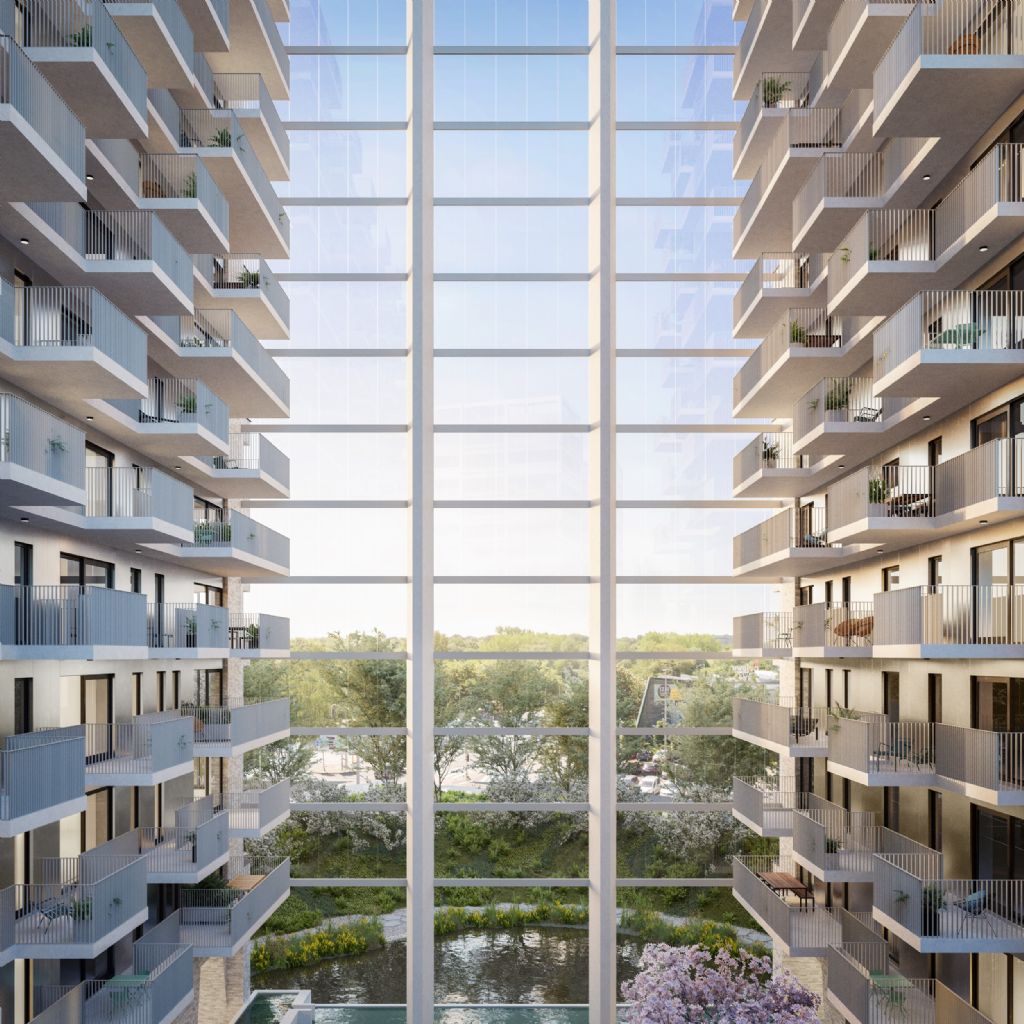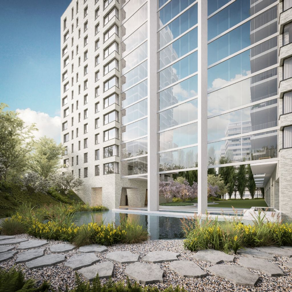 Patrick Lootens, architect en medeoprichter van POLO Architects, licht toe hoe het ontwerp maximaal inzet op leefkwaliteit en woonbeleving: “Het gaat om een gekende en toegankelijke site in Antwerpen die meteen in het oog springt wanneer je de stad benadert. Door het gebouw te ontdubbelen ontstaat een harmonieus geheel met afgeschermde gedeelde buitenruimte en privéterrassen. De landschapsontwikkeling wordt getypeerd door de parkachtige omgeving, de waterpartij en het groen die samen volledig in lijn zijn met de uitstraling van de gebouwen.”