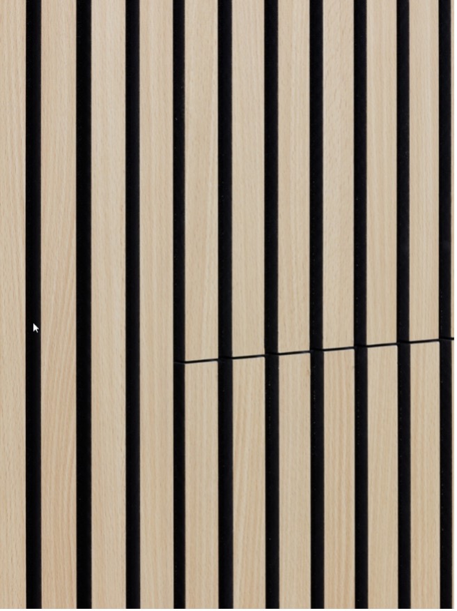 Door de continue verlijming van de lat kan de plaatser daarenboven de plaat op exacte hoogte en/of breedte brengen en dit zonder kwaliteitsverlies of zonder het loskomen van latten. Type Ls werd hier gemonteerd op een enkel kaderwerk van 70 mm diep gevuld met 50 mm rotswol, wat een absorptiewaarde van 0.95 (alpha w) oplevert, de hoogst haalbare klasse A. Naast de Ls latten is er bovendien ook een variant met massieve Latten Rubberwood ontwikkeld, Type Ls m, voor een massieve akoestische houtwand.