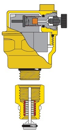 Automatische hygroscopische ontluchter voor plaatsing op radiatoren