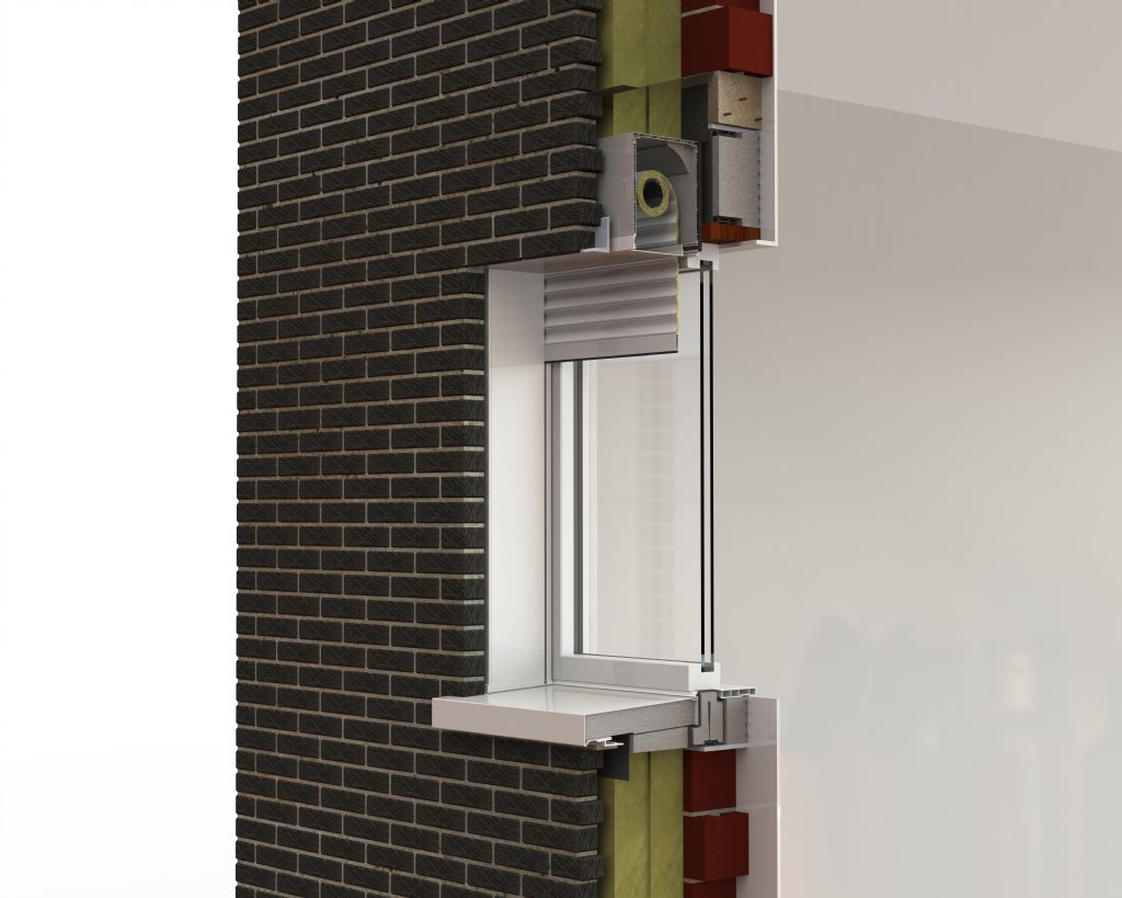 ShutterX® van Wilms brengt hier verandering in. Vanaf nu kan Wilms ook een rolluik aanbieden dat gegarandeerd luchtdicht is. Er is geen perforatie meer van de binnenmuur én het rolluik is onzichtbaar vanaf de buitenzijde. Sterker nog, de isolatie die wordt weggenomen door het inbouwen van het rolluik vervangen we door een composiet profiel achter de kast.