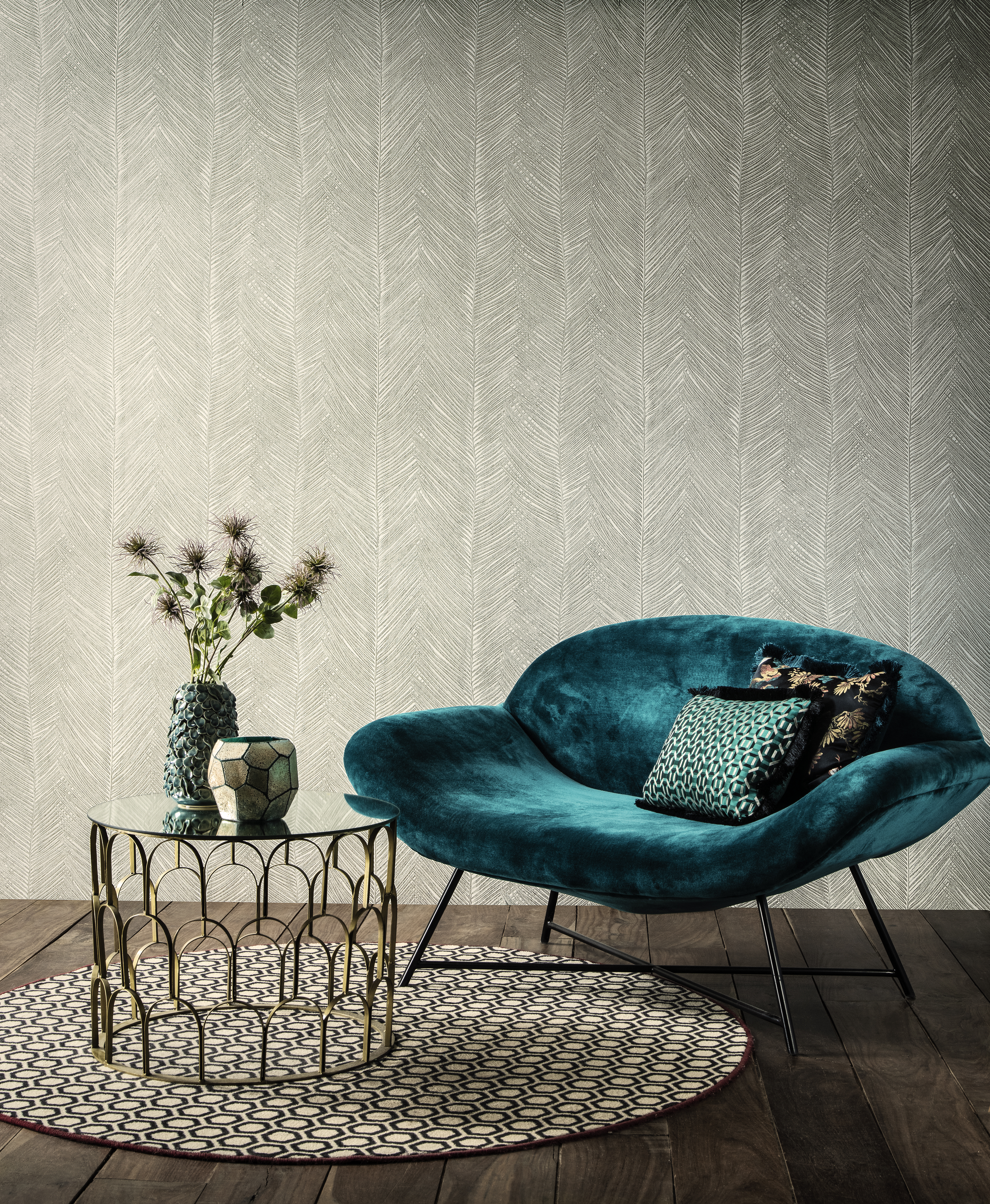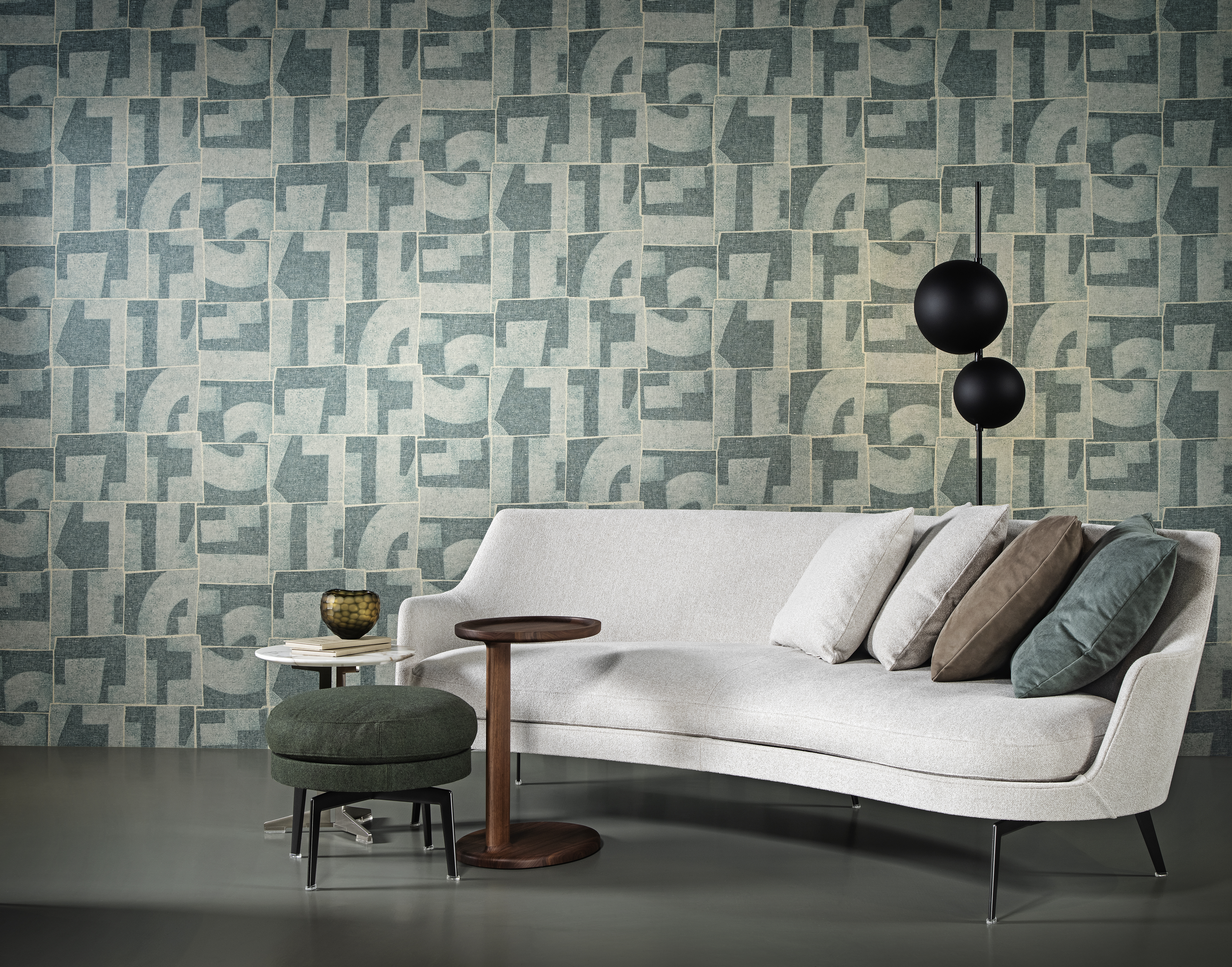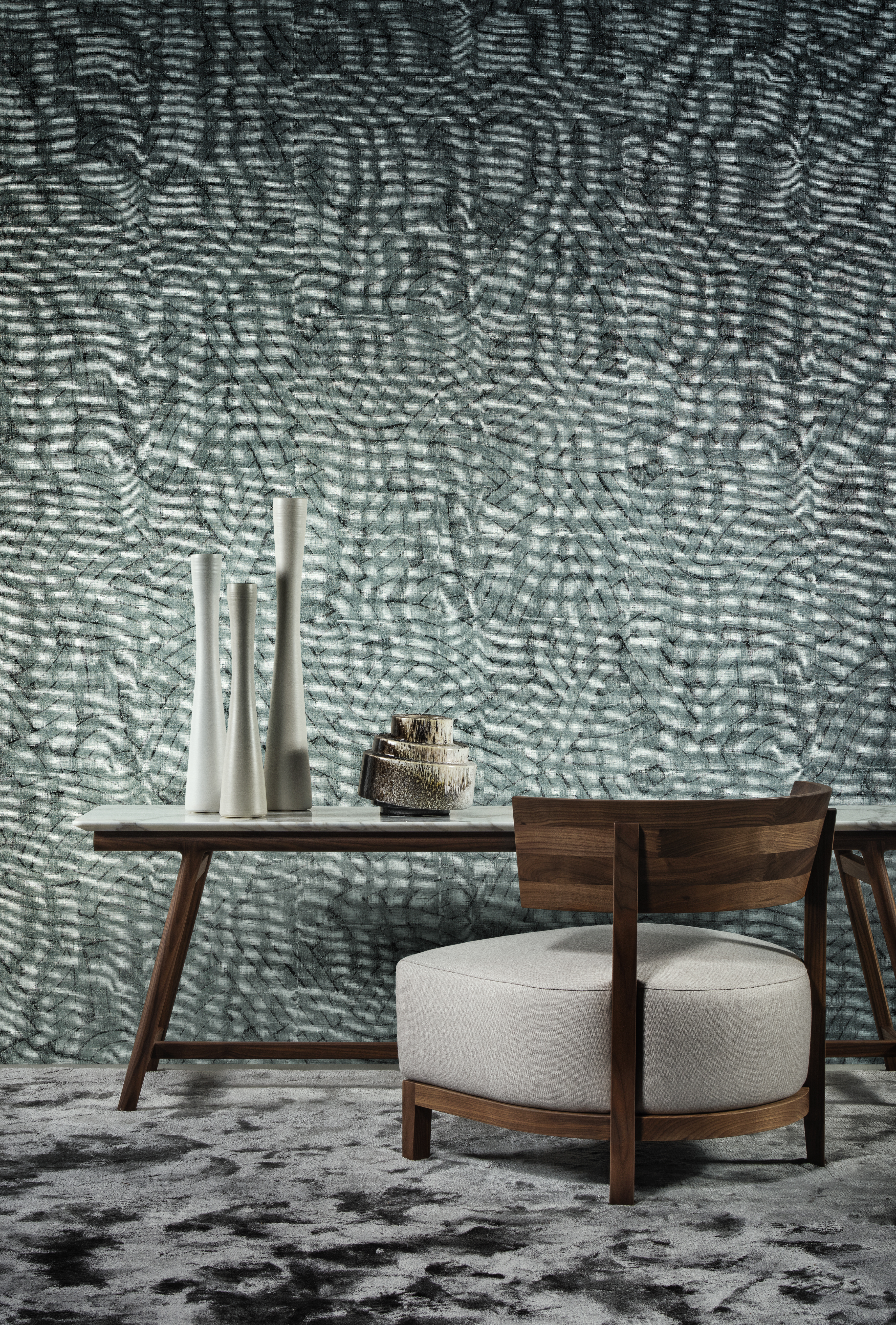 Ook blauw is een veelvoorkomende kleur in het assortiment van Arte. Het op zijde geïnspireerde Dessin Tasar ligt bijvoorbeeld in deze tint op de markt. Maar ook Dessin Module met haar tijdloze geometrische design en het glamoureuze, vintage Dessin Talamanca zijn in koninklijke blauw verkrijgbaar.