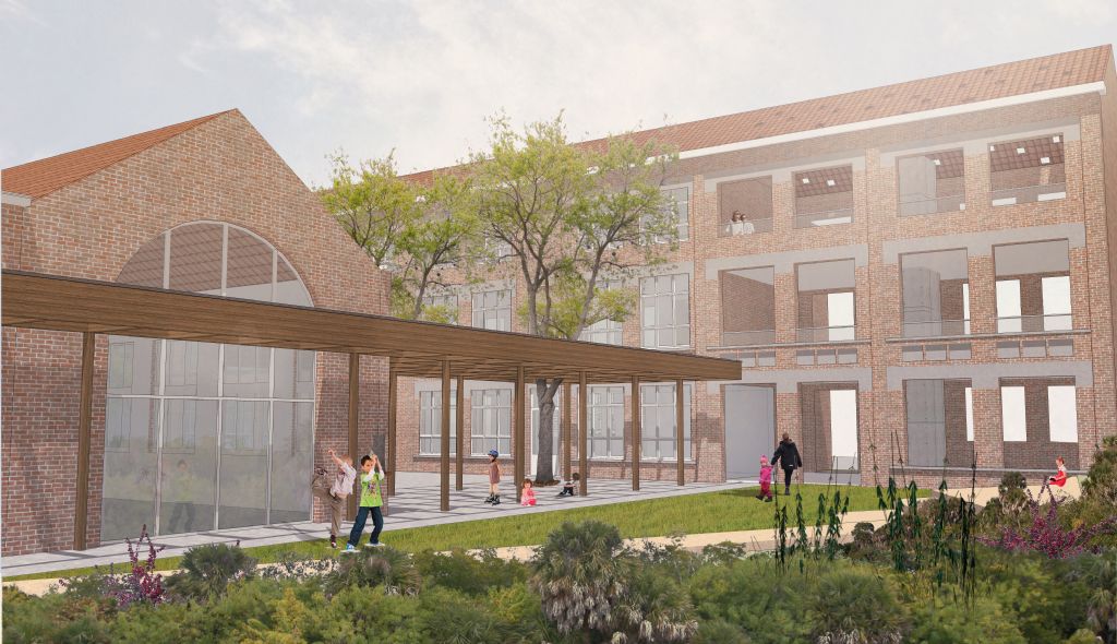 - De kwaliteit van het bestaande patrimonium, dat bestaat uit eenvoudige structuren, veel licht en ruimte en duurzame, onderhoudsvriendelijke materialen. Dit biedt de kans om met het beschikbare budget meer te doen dan het gevraagde programma
