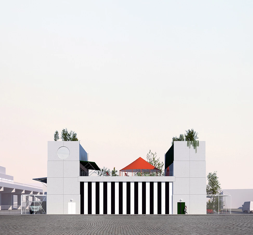 Architectenbureau CENTRAL heeft uiteindelijk gekozen voor een stedelijke vorm met een sterke en aparte identiteit, die zich losmaakt van zijn industriële omgeving. Wie het gebouw in H-vorm van dichterbij bekijkt, merkt dat de hoogte van de twee torens die de H vormen, verwijst naar de omringende gebouwen, waardoor een sterke stedelijke aanwezigheid ontstaat.
