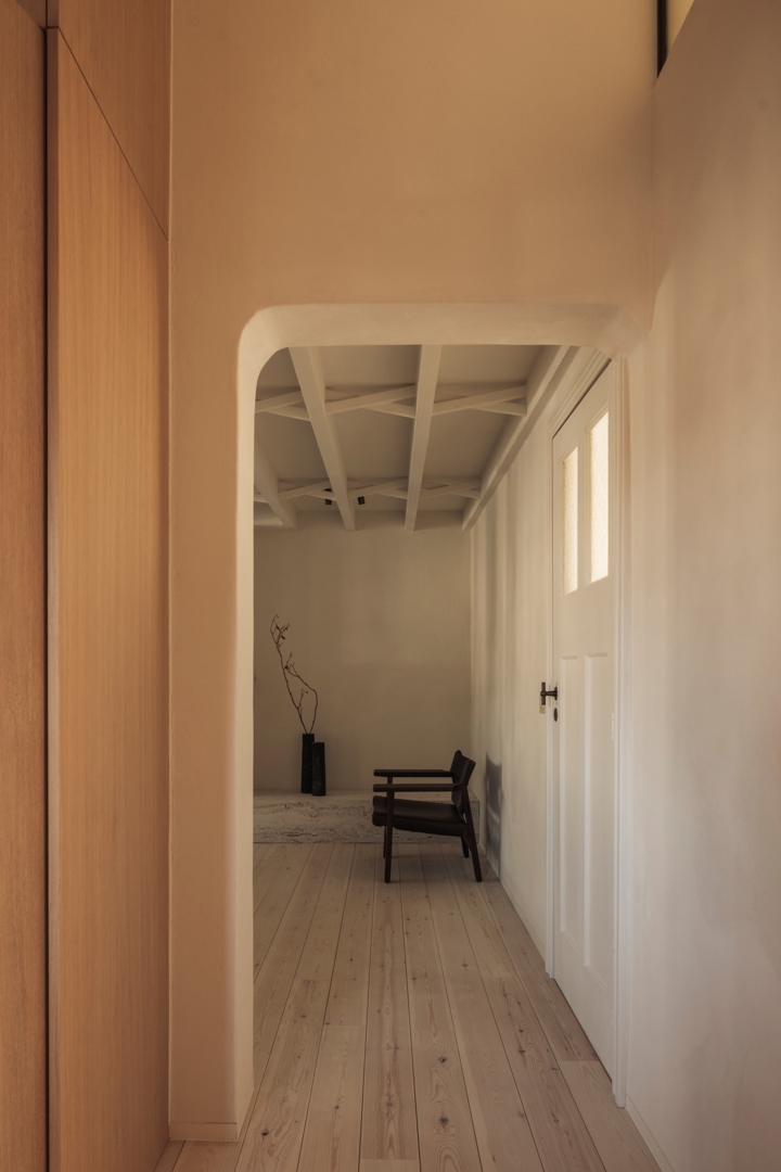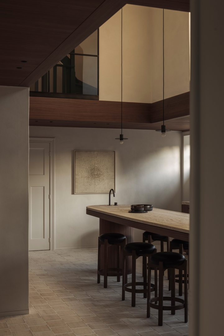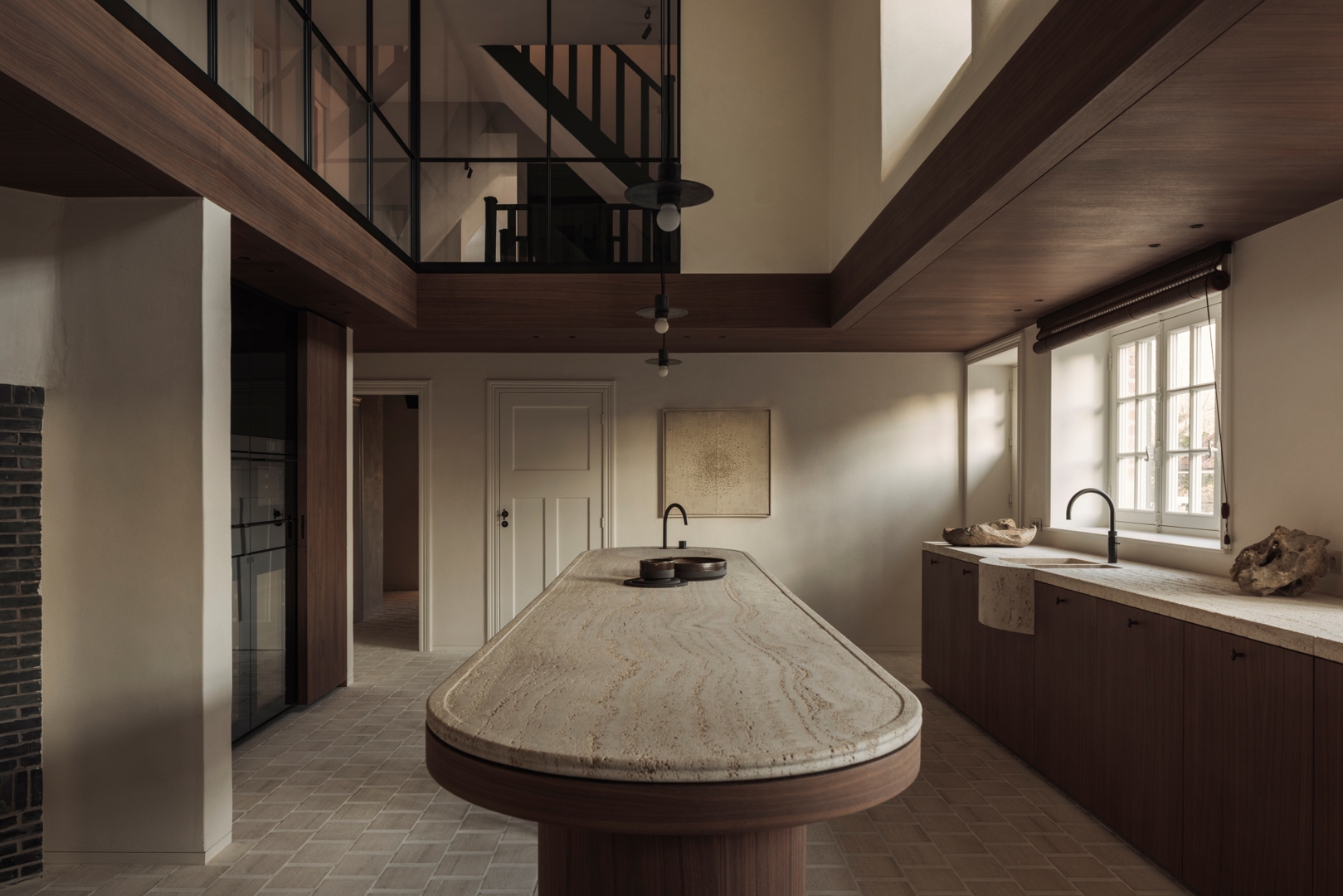 In het ontwerp wordt een evenwicht gezocht tussen openheid en geborgenheid. Ruimtelijke continuïteit en lichtinval spelen een centrale rol, maar worden afgewisseld met meer intieme zones die refereren aan de oorspronkelijke indeling. De kamers zijn sober uitgewerkt, met een nadruk op rust en proportie. Die terughoudende benadering creëert een coherente woonervaring waarin verschillende functies naadloos in elkaar overlopen.