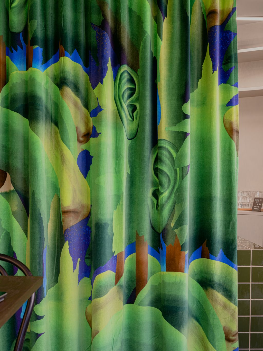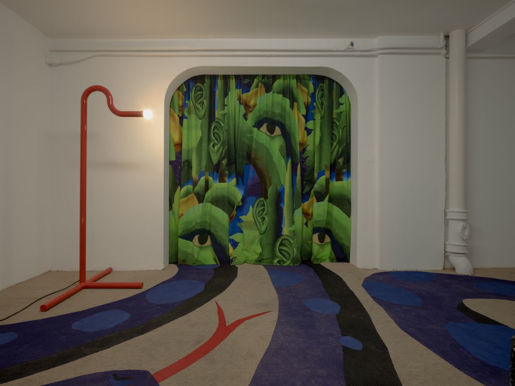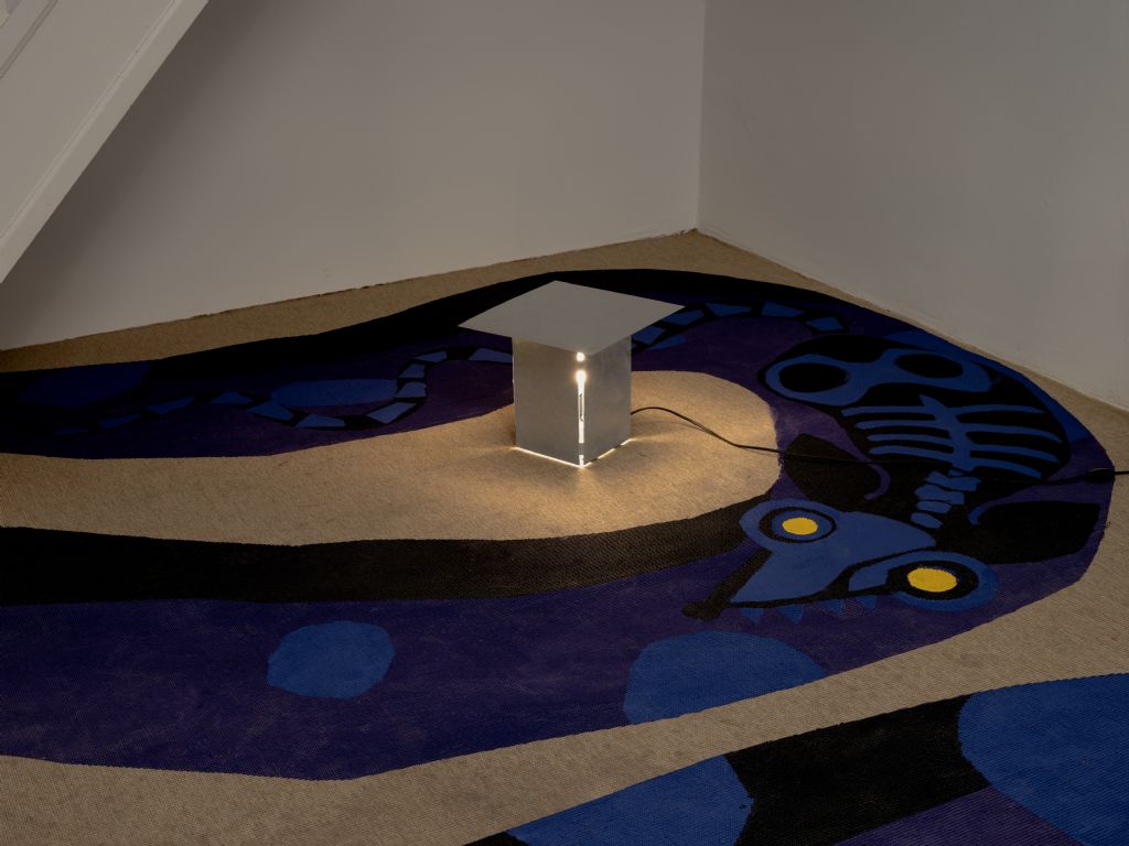 In de kelder van de galerie presenteert Christoph Hefti de installatie Snake, een met de hand geschilderde vloertekening. Het verwijst naar een van de vloeren in SQ Central, die ontworpen is als een gigantische, maar daardoor haast onzichtbare slang. Daarnaast presenteert de Brussels-Zwitserse textielontwerper het groene gordijn Face Landscape, dat ook deel uitmaakt van het restaurant Bambino in SQ Central. Onbewust geïnspireerd door zijn wandelingen in een Zwitsers bos tijdens de eerste Covid lockdown, introduceert Hefti een kleurrijk, natuurlijk decor en een verwijzing naar old school textieldesign. De menselijke oren en ogen geven het decor een mysterieus tintje. De Metrò Lamp (MANIERA 17) van Piovenefabi, geïnspireerd op de Milanese metro, benadrukt de speelsheid van Hefti's presentatie.