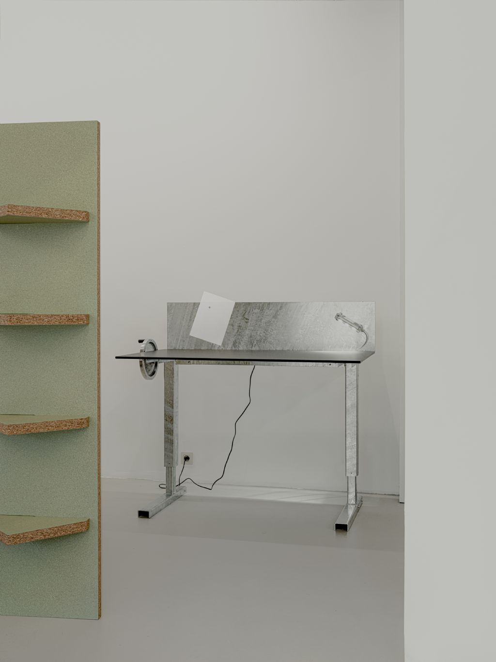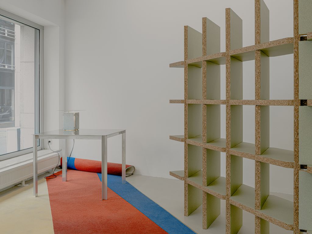 Het eerste werk van de Gentse architect Maxime Prananto voor de galerie is Autocrat Table, dat bestaat uit twaalf identieke, gevouwen stalen platen. De naam verwijst naar het vermogen van een systeem om te consolideren, om zichzelf te versterken en om eerdere beslissingen te bestendigen. De tafel kan worden gelezen als bewijs van zowel de prestaties als de strikte beperkingen van standaardisatie. In het geval van een tafel wordt deze opgelegde uniformiteit heel duidelijk opgelegd aan een typologie die dat niet nodig heeft. Misschien is hier sprake van de omkering van modulariteit. Eenmaal weer in elkaar gezet, komen er onverwachte details tevoorschijn uit dit proces van opdeling en eenwording. De Brusselse ontwerper Stéphane Barbier Bouvet bedacht de Adjustable Table, die niet weerhouden werd voor SQ Central. Door de meest geavanceerde systemen op de markt te combineren, bedacht hij een nieuw verstelbaar bureau, dat lokaal kan worden geproduceerd, in het kleine ecosysteem van zijn eigen studio. Barbier Bouvet onderzoekt de culturele lading van kleine constructiedetails en standaardelementen. Met zijn creaties viert hij de specificiteit van culturele kennis.