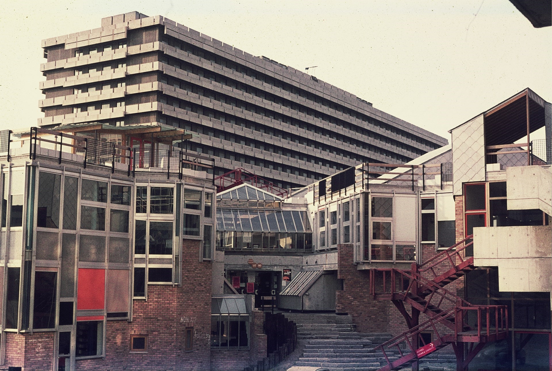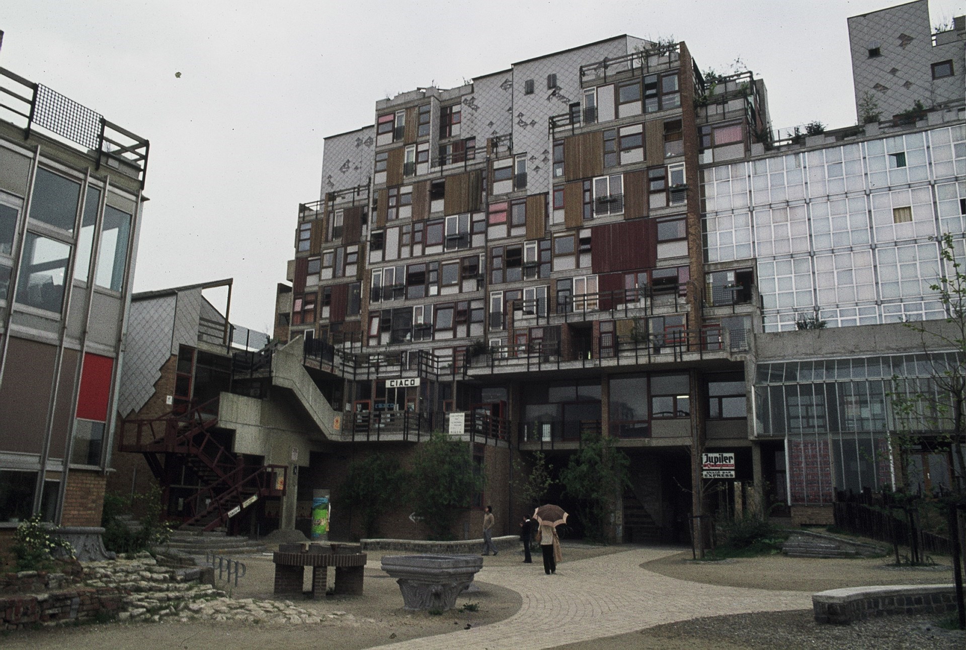 Maar hoe brengt men dit tot uiting in architectuur? Vooreerst door een andere planopbouw, wel vertrekkend van een streng rastersysteem. Vooral door een compleet andere benadering van de gevelcompositie en door gebruik te maken van een gediversifieerd materiaalgebruik “pour donner un visage pluraliste à l’ensemble”. Vanaf het begin waren er zowel voor- als tegenstanders van Kroll’s werkwijze. La Mémé werd omschreven als de uitdrukking van een nieuwe, bevrijdende architectuur die eindelijk halt toeriep aan de “onmenselijke” evolutie van de moderne architectuur, anderen zagen dit gebouw als “een ruïne in aanbouw”. Voor veel niet-architecten, die geen weet hadden hoe La Mémé tot stand is gekomen, was de verschijning een vorm van bric-à-brac constructie, een gebouw opgetrokken na een uitverkoop van een brico-zaak. Dat deze bouwwijze resulteerde in erg complexe detaillering met als gevolg een veel vluggere degradatie van de bouwfysische toestand lag voor de hand. Opgetrokken juist voor de energiecrisis van 1973 resulteerde dit in grote bouwtechnische problemen.