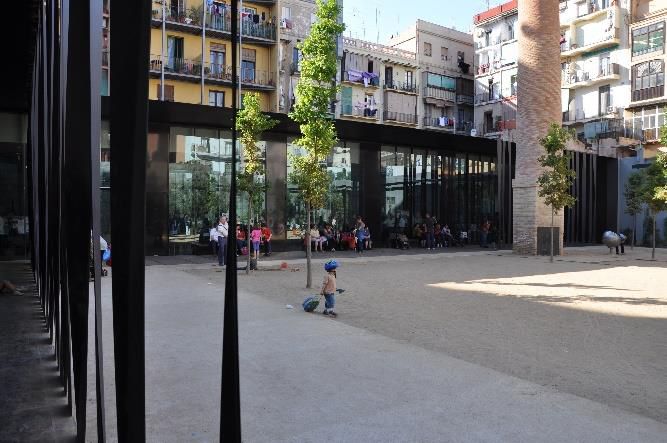 Om de stad leefbaarder te maken, een verhoging van de levenskwaliteit, werd vanaf 1985 in Barcelona gestart om de binnen gebieden van de bouwblokken te integreren in een beleid stadsrenovatie. Het elimineren van constructies met een industrieel karakter binnen de bouwblokken liet toe nieuwe infrastructuur in te brengen voor de wijkbewoners, plaatsen om samen te komen, zowel buiten als binnen. Een geslaagd voorbeeld is gelegen nabij de Mercato San Jordi, een ontwerp van RCR Arquitectes.