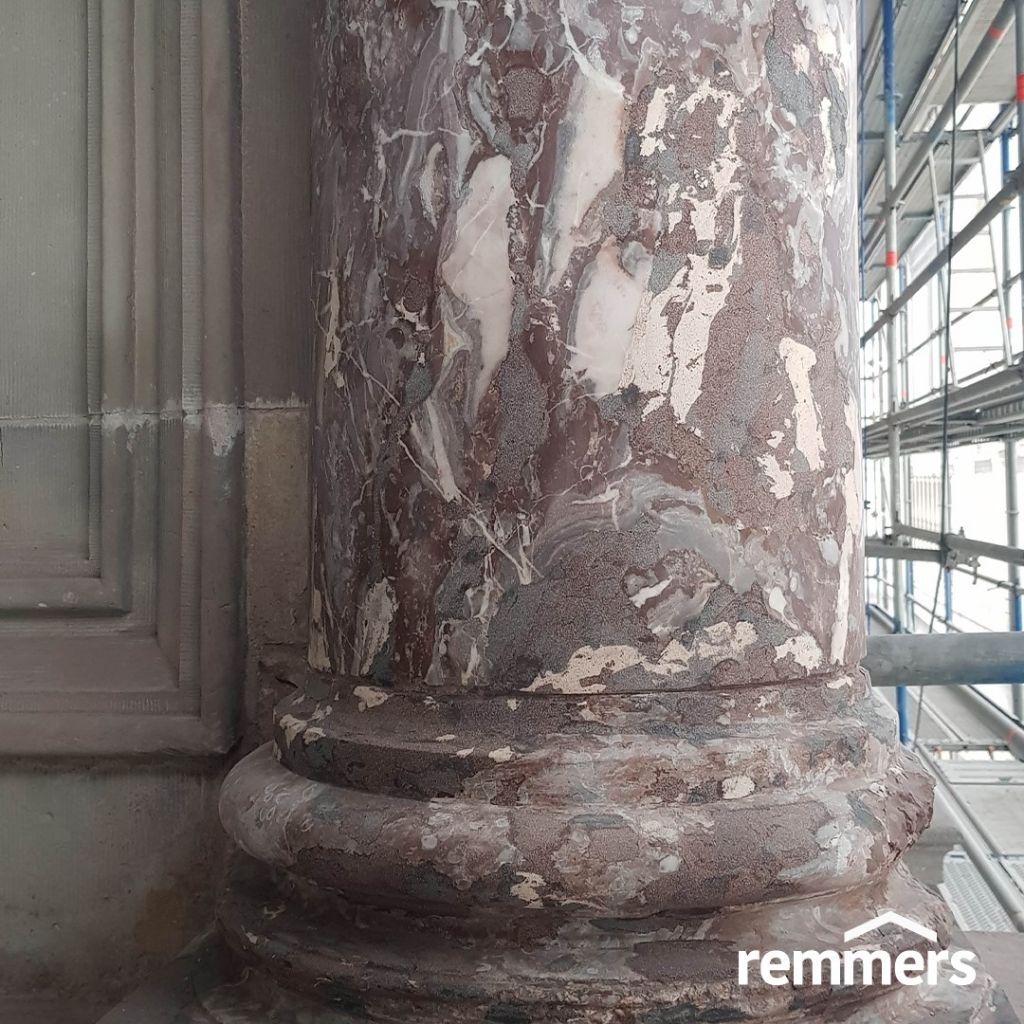 In het voorjaar van 2017 gaf stad Antwerpen eindelijk groen licht voor de start van de renovatiewerken. Zij gaven het Koninklijk Instituut voor het Kunstpatrimonium (KIK) de opdracht gaf om de scheuren in het Belgische rode marmer en de blauwsteen aan de gevel te onderzoeken. En dat was hoogst nodig, want dertig jaar na de laatste restauratie vertoonde de gevel opnieuw duidelijk tekenen van verval.