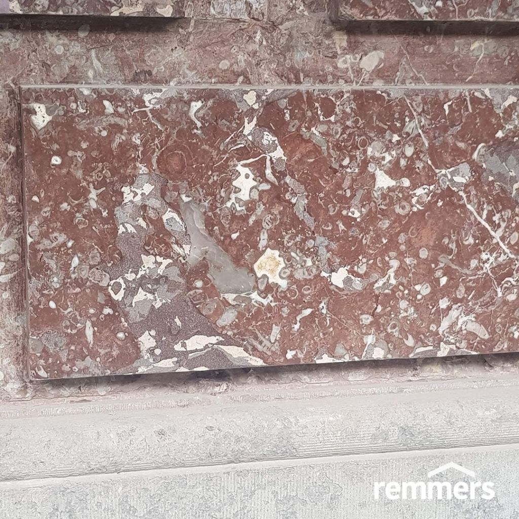 Toch was het verhaal hiermee nog niet ten einde. Een grondig materiaal-technisch onderzoek wees uit dat de meest courante mortelsoorten niet geschikt waren voor de broze rode rustica. Zo was het bijvoorbeeld een vereiste dat het verweringsmechanisme van het marmer identiek was aan dat van de mortel. Bovendien moesten beide materialen op eenzelfde tempo evolueren doorheen de tijd en gewapend zijn tegen dezelfde weersomstandigheden.