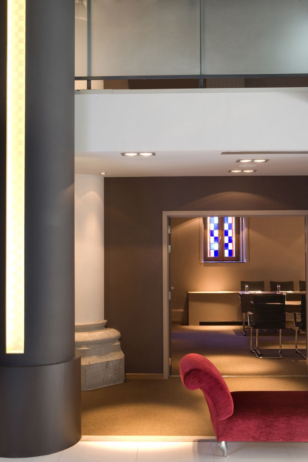 Dan Jonckers: Alle eisen van zowel bouwdienst, brandweer als hoteluitbater trachten te verzoenen zonder afbreuk te doen aan de totale ruimtelijke ervaring. Door de onconventionele vorm van het pand is geen enkele van de 77 kamers gelijk. Hierdoor moesten er steeds andere oplossingen gezocht worden voor het integreren van de bestaande elementen van de kerk in de kamers, badkamers en gangen samen met alle speciale technieken.