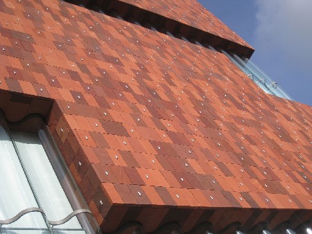 Net zoals de kleren de man maken, is de gebruikte gevelbekleding van erg groot belang voor de visuele identiteit van een gebouw. Bij het MAS is het de rode Indische hardsteen die bijdraagt tot het monumentale karakter van dit nieuwe museumcomplex. Het was de eerste keer dat dit type natuursteen in België gebruikt werd. Met groot succes, zo blijkt.