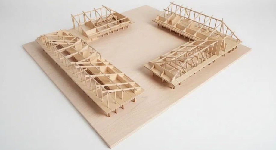 De keuze voor prefab houtbouw stelt hoge eisen aan de nauwkeurigheid van het ontwerp. Omdat de elementen vooraf worden geproduceerd, moeten alle afmetingen en aansluitingen exact kloppen. Het digitale 3D-model in Archicad fungeert hierbij als leidraad.