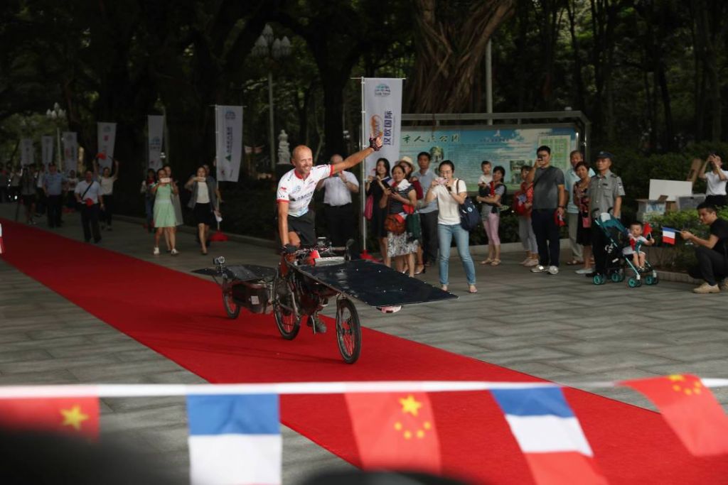 De Mechelse architect en ontwerper Raf Van Hulle kwam vorige week als eerste over de meet in The Sun Trip, een duizenden kilometers lange wedstrijd voor e-bikes, aangedreven door zonne-energie. Tussen het Franse Lyon en het Chinese Guangzhou legde Van Hulle in 45 dagen een slordige 12.000 kilometer af.