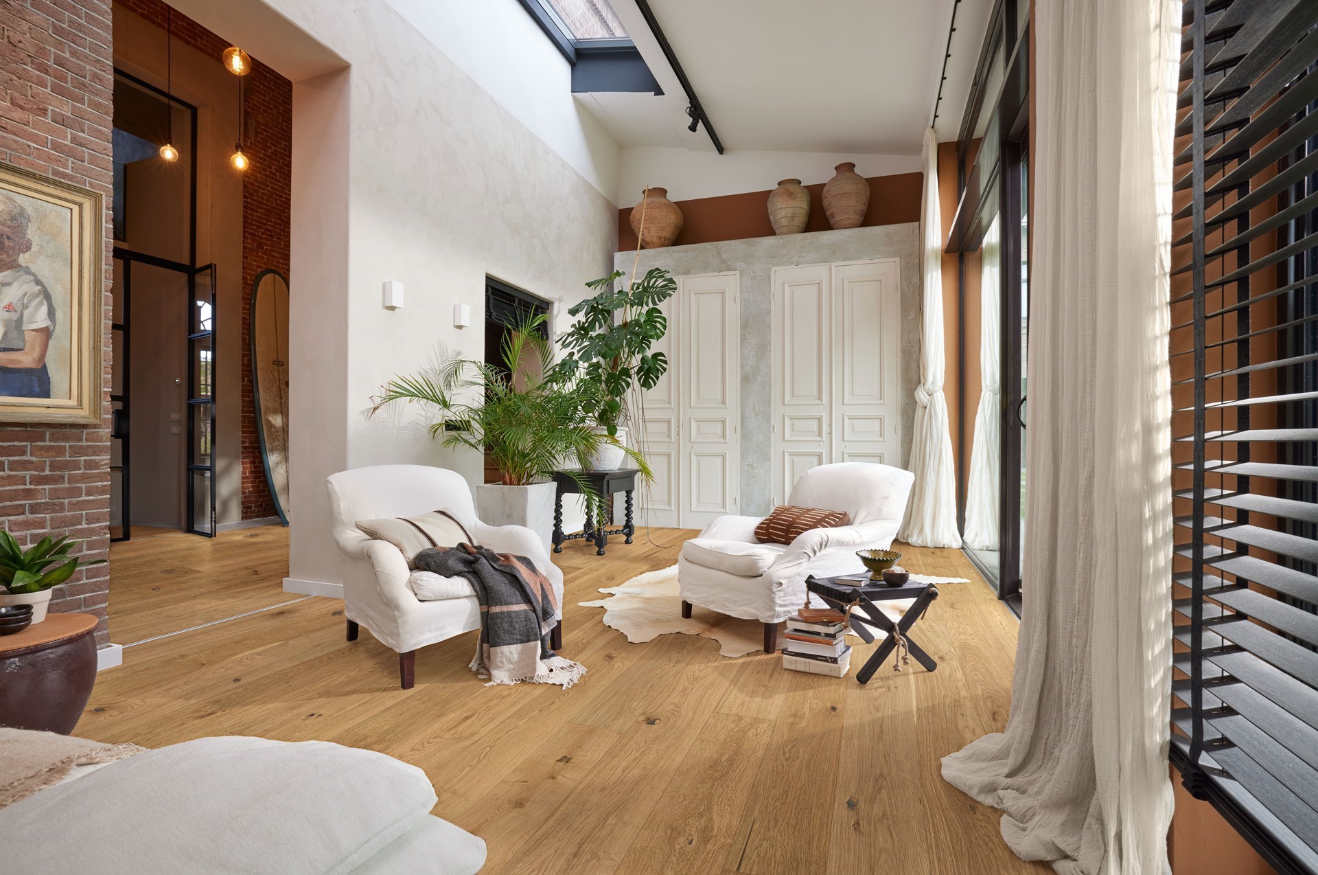 Integendeel: dankzij de verbeterde oppervlaktetechnologie combineert Natureflex HD 100 een natuurlijk mooi oppervlak met authentieke en levendige kleurverlopen. Hier worden de schoonheid en natuurlijkheid van het hout gecombineerd met verbeterde producteigenschappen die deze echt houten vloer nog geschikter maken voor dagelijks gebruik. Dankzij het ultramat gelakte Duratec Nature-oppervlak is de Natureflex vloer bijzonder robuust en gemakkelijk te onderhouden.