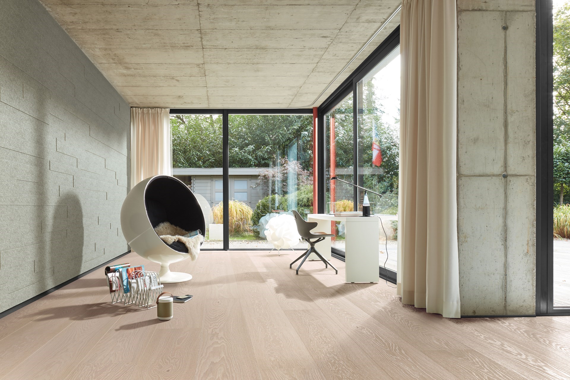MEISTER vult zijn akoestische panelen aan met drie nieuwe houtoppervlakken. Karaktervol massief hout en hoogwaardig vilt vormen een fraai wandpaneel dat tegelijkertijd de akoestiek in de ruimte aanzienlijk verbetert: de nieuwe akoestische panelen "Acoustic Sense WOOD" geven de moderne inrichting een bijzondere flair en absorberen tot 100% van het geluid.