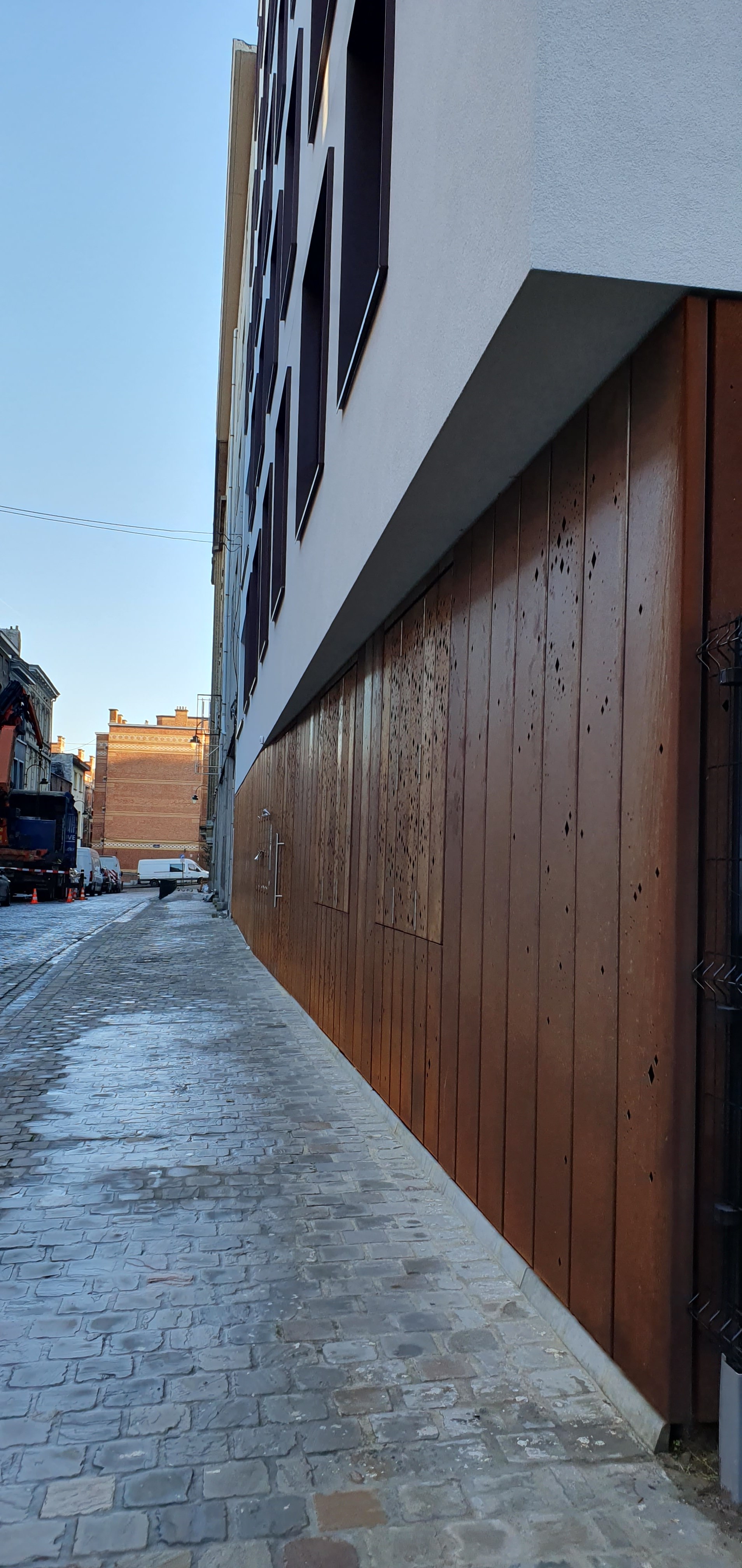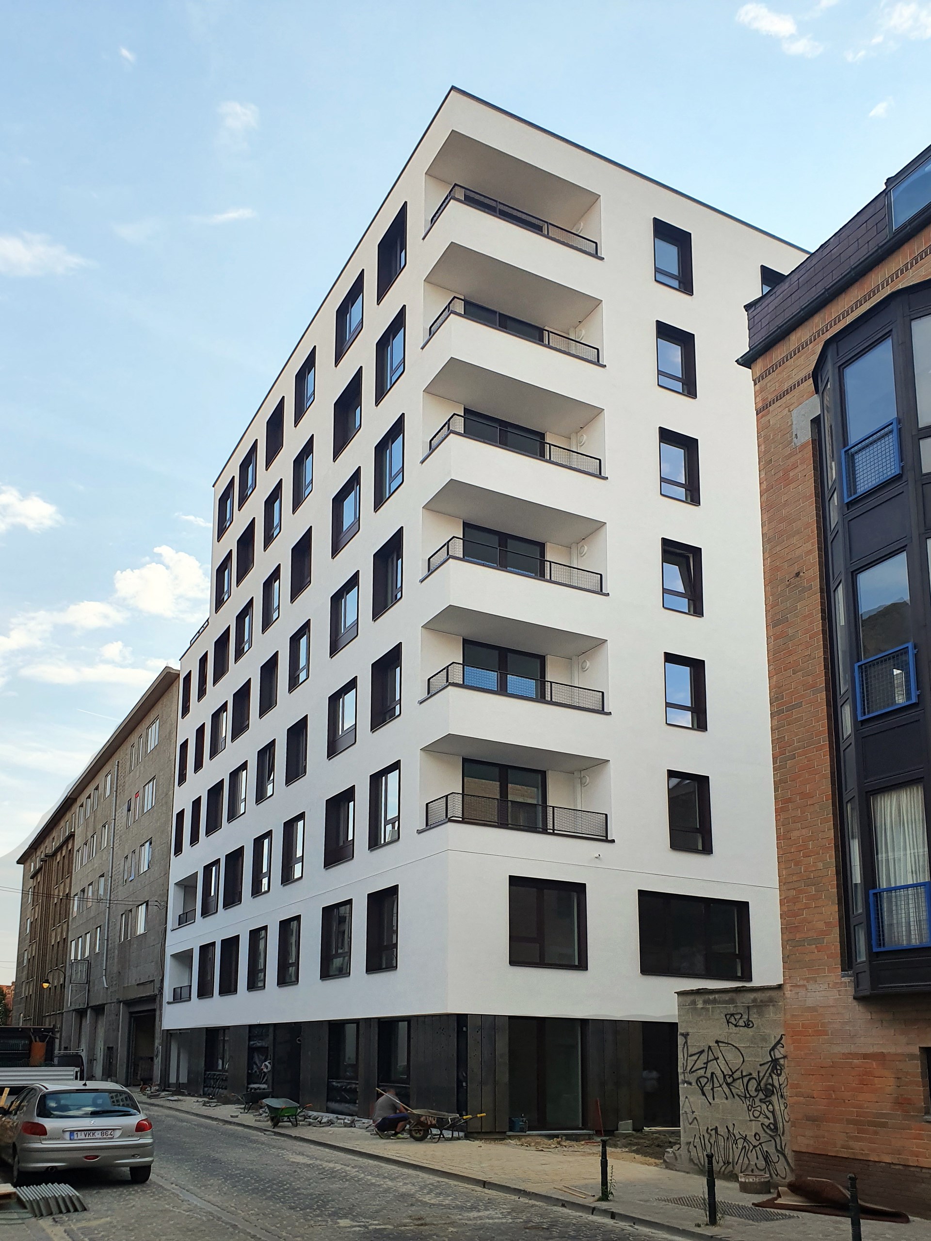 Voor het sociaal huisvestingsproject in de Menslievendheidsstraat in de Brusselse Marollenwijk stelde de BGHM (Brusselse Gewestelijke Huisvestingsmaatschappij) een uitdagende visie voorop. Enerzijds was er de vraag naar de realisatie van betaalbare en kwalitatieve appartementen in het hartje van Brussel, anderzijds werd een prefab houtconstructie als bouwprincipe om de impact op het milieu te beperken als uitgangspunt gekozen.