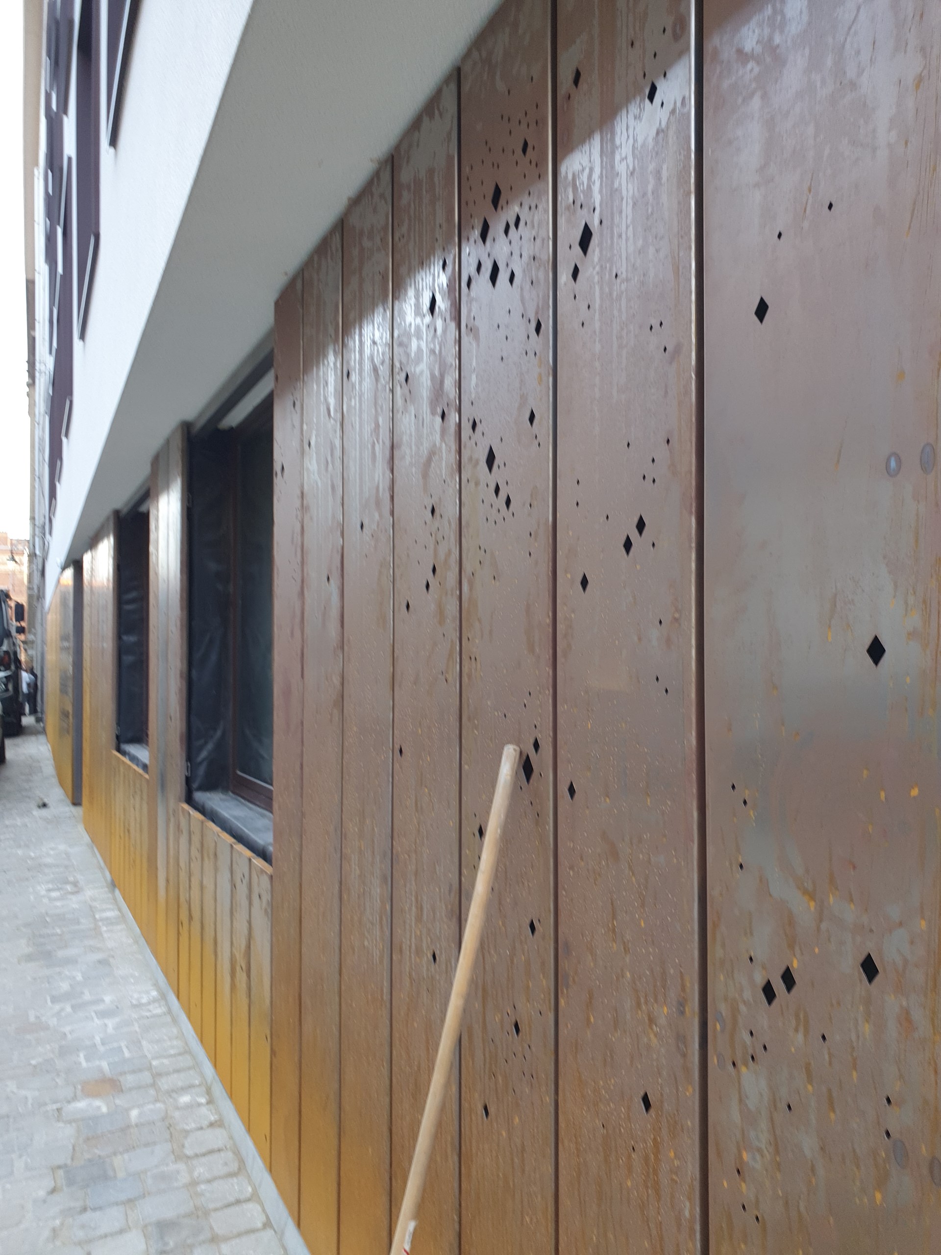 Het gevelisolatiesysteem bestaat uit WILLCO Neopor Isolatieplaten (0,032 W/(mK)). Er werden brandregels in minerale wol (0,035 W/(mK)) gebruikt boven de ramen. De eindlaag bestaat uit WILLCO Premium sierpleister (korrel 1,5 mm). Door de unieke hydrofobe eigenschappen in de sierpleister, droogt de gevel veel sneller op. Het parelende effect zorgt ervoor dat de blootstelling aan nat en vocht minimaal is, wat resulteert in het langer proper blijven van de gevel.