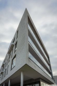 Mertens-architecten heeft met Gonthier onlangs een nieuw poortgebouw in het centrum van Kontich voltooid. De ligging aan een toegangspoort tot de gemeente vertaalt zich architecturaal in een verhoogd hoekaccent in de punt van het perceel.