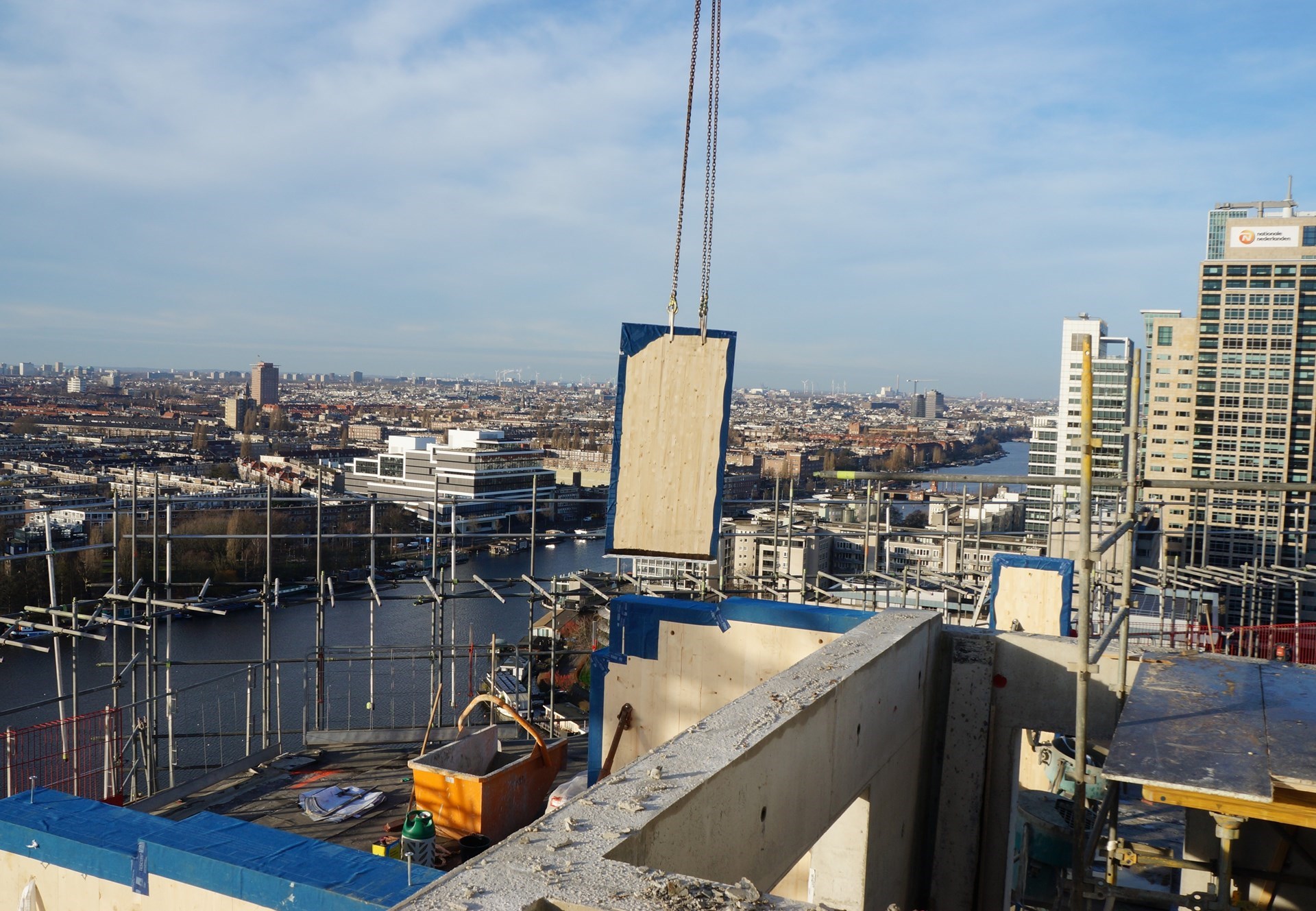 In Amsterdam, direct aan de Amstel, is met HAUT een van de hoogste houten gebouwen ter wereld verrezen. De constructie van het 73 meter hoge en 21 verdiepingen tellende gebouw bestaat naast beton namelijk voor een groot deel uit hout. Die hybride constructie biedt zowel ecologische als economische voordelen. Hout slaat CO2 op en is daarmee het perfecte materiaal om aan de hoge milieueisen en de duurzaamheidsambities van het project te voldoen.