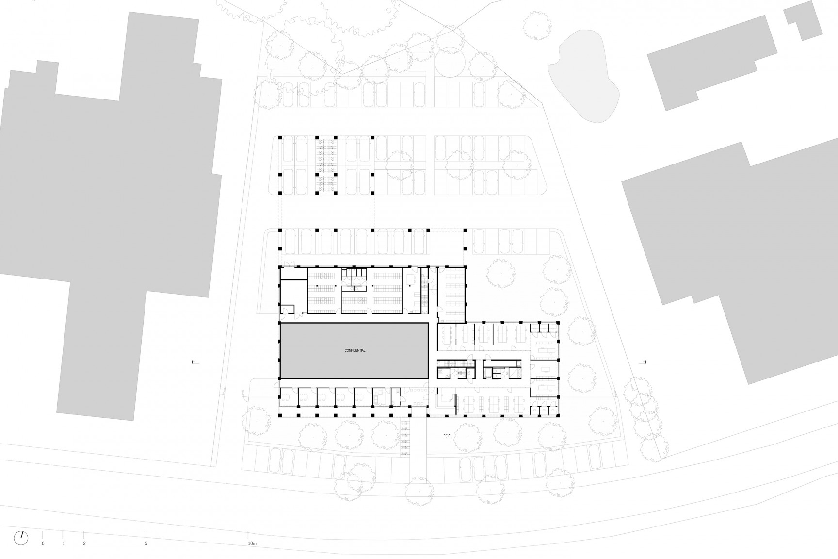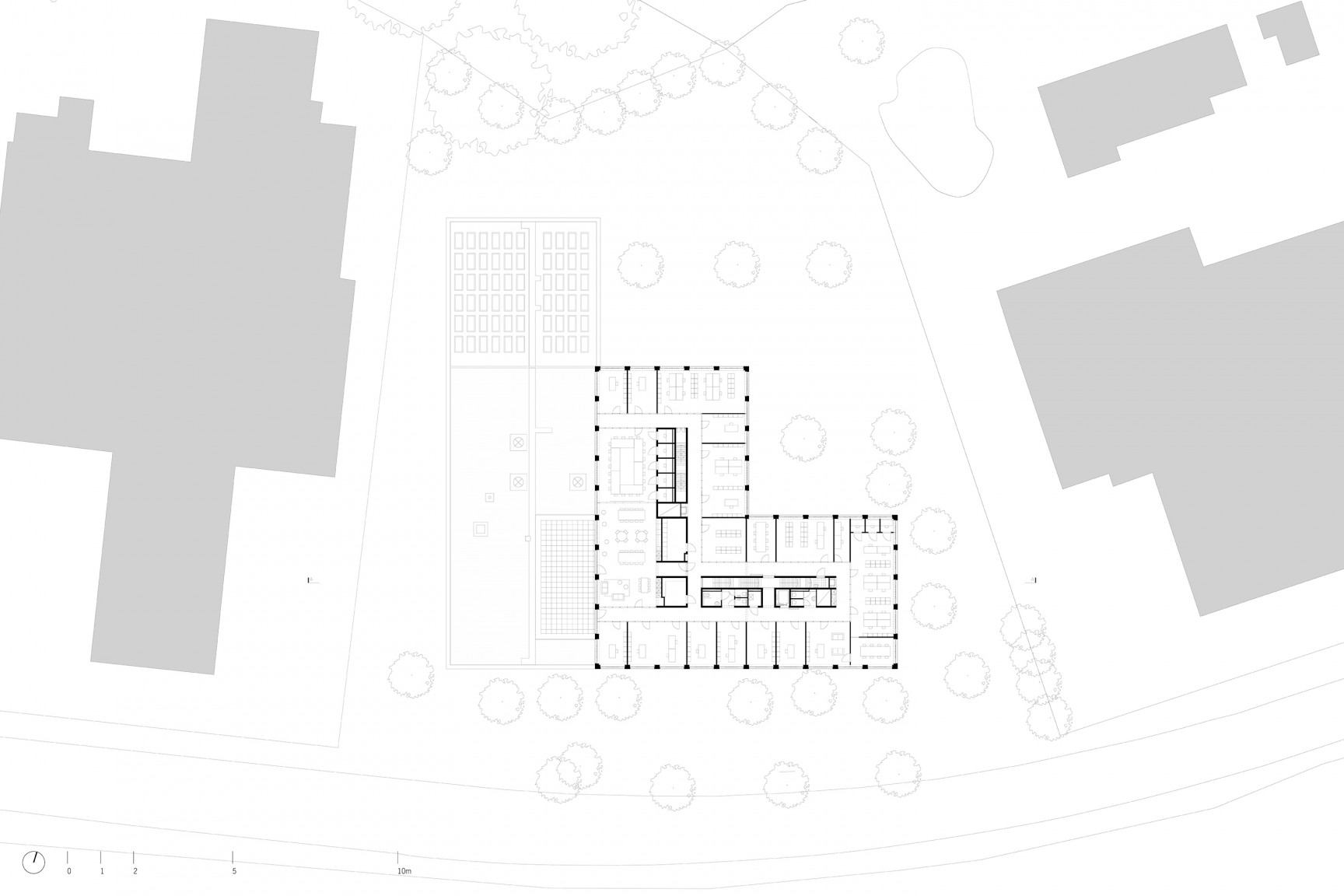 Op niveau +2 tot slot zijn de lokalen gepositioneerd van de korpsleiding en ondersteunende diensten.