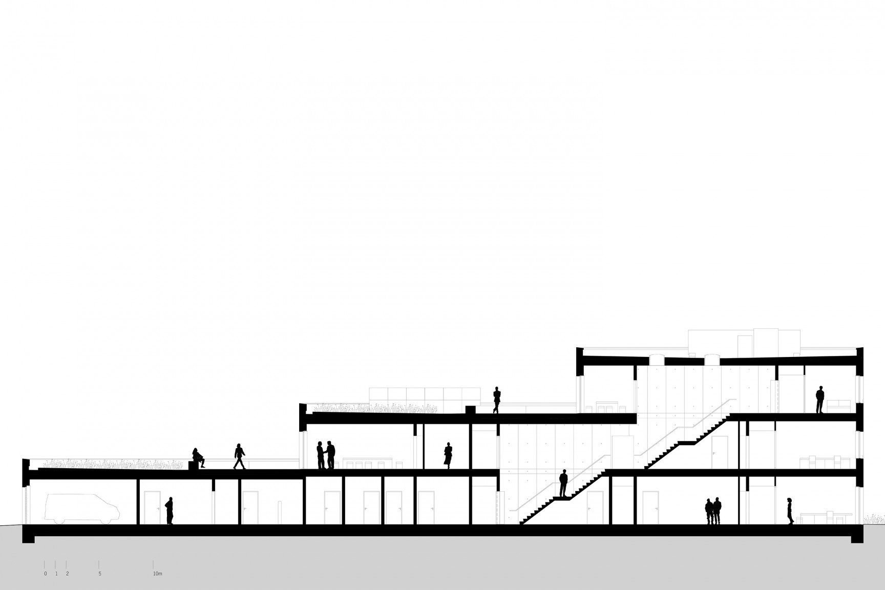 META ontwerpt voor Lokale Politie Kouter Torhout trapvormig gebouw met maximale planflexibiliteit