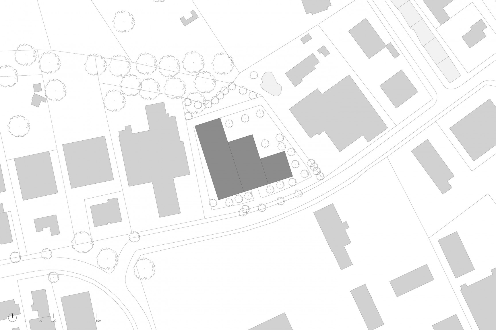 De trapvorm biedt plaats aan dakoppervlakken die ingezet worden als dakterras of groendak. Dakdelen die niet in het zicht zijn, worden voorzien van zonnepanelen.