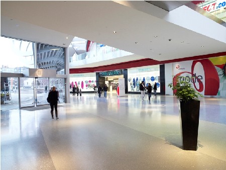 Het plafond is bovendien mooi afgewerkt: dankzij het gebruik van het zogenaamde C-Bandrastersysteem zijn naden in het plafond nauwelijks zichtbaar en is de verlichting volledig in het plafond verwerkt.