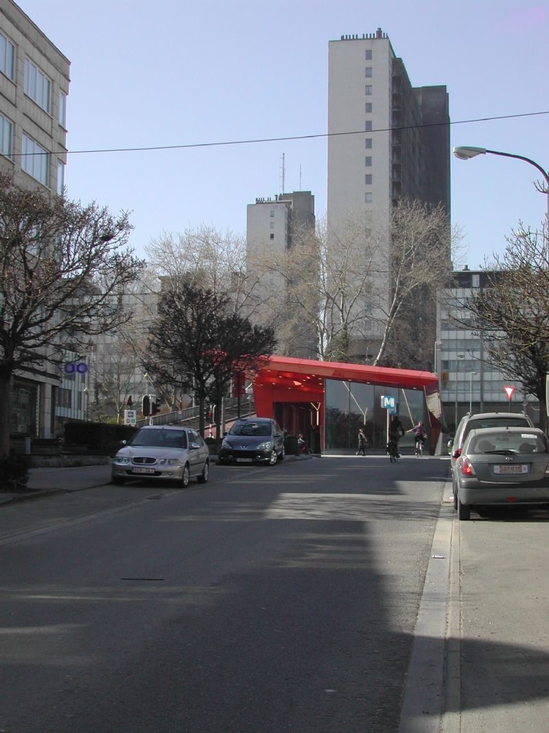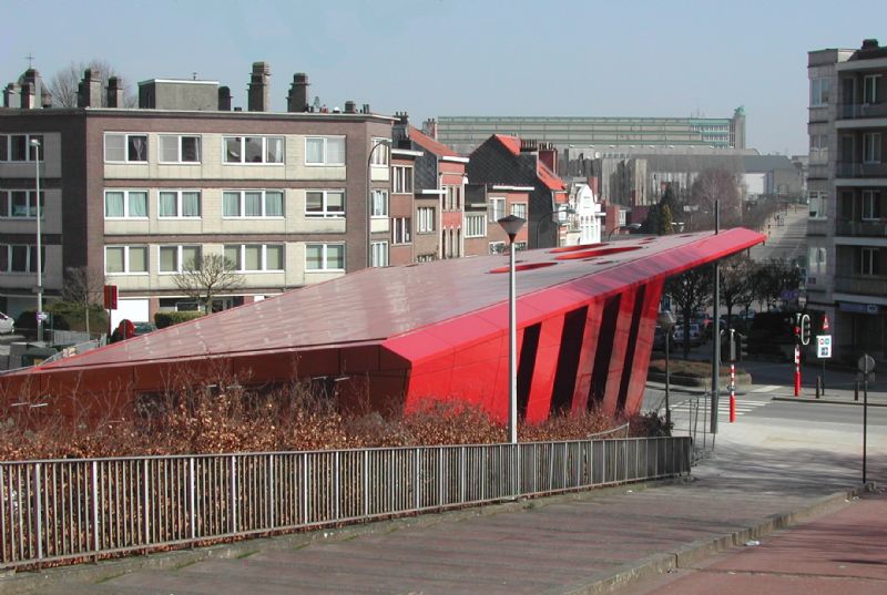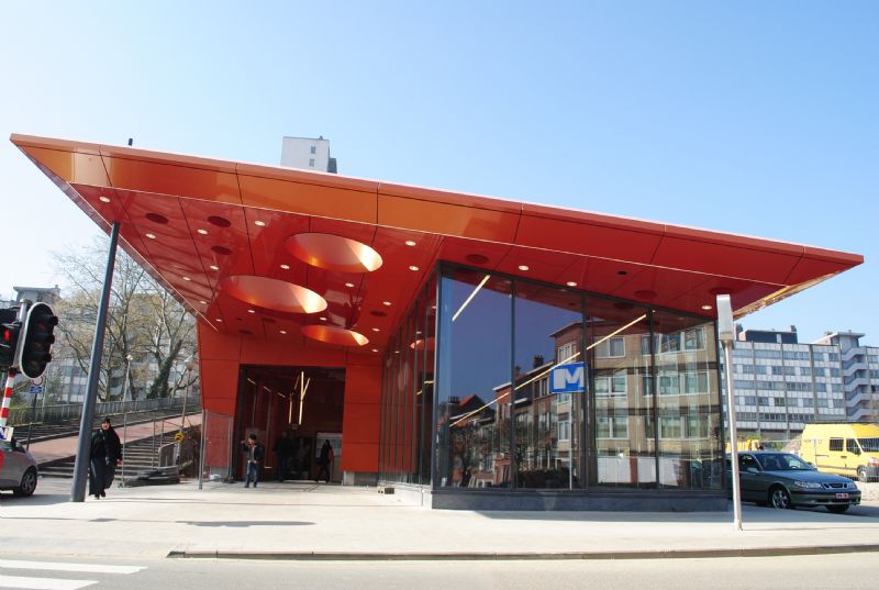 De architect ging op zoek naar een volume dat de indruk geeft van een gebouw in beweging. De vluchtlijnen van het gebouw moeten in dialoog treden met de lange, trage helling naar de hoger gelegen wijk. Het gebouw wil daarenboven een herkenningspunt zijn, een nieuwe mijlpaal in het stadsbeeld. De opvallende kleur lokt de mensen naar de onderwereld van de metro.