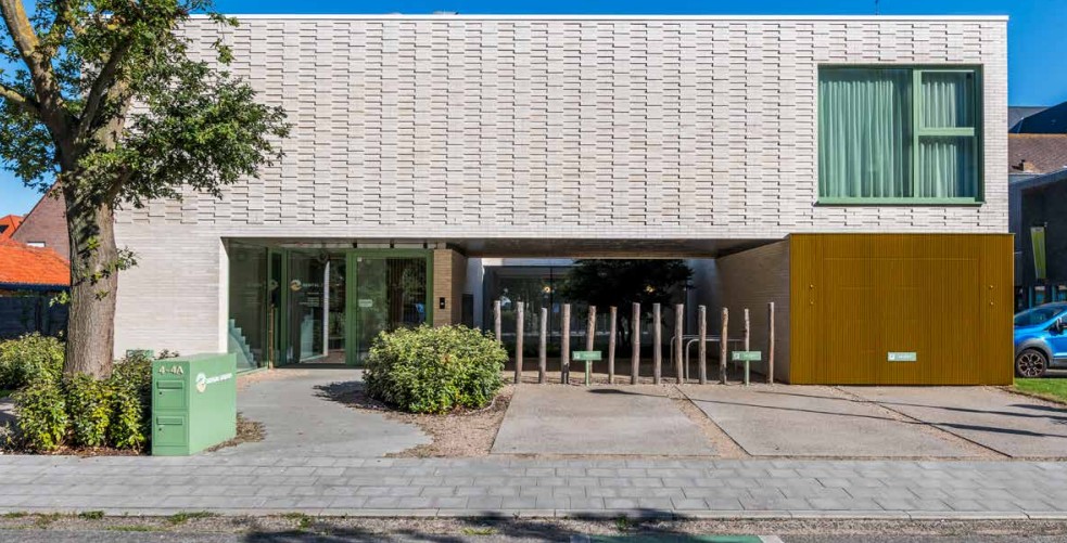 In Bredene realiseerde Steelandt . Declercq Architecten een tandartsenpraktijk met woning en studio waarin functionaliteit en architecturale expressie elkaar versterken. Gelegen op een hoekperceel in de groene Duinenwijk valt het gebouw op door zijn uitgesproken maar beheerste gevelarchitectuur. Het opmerkelijke metselverband, een eigentijdse interpretatie van het klassieke halfsteenverband met afwisselend terugspringende en uitstekende bakstenen, vormt een duidelijke signatuur en verleent het project een gelaagdheid die zowel vanop afstand als van dichtbij tot zijn recht komt.