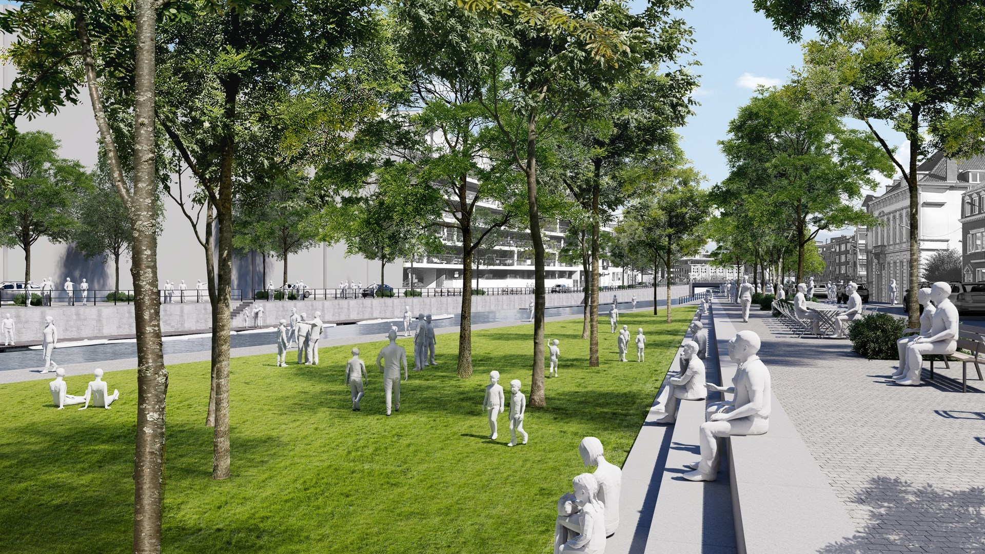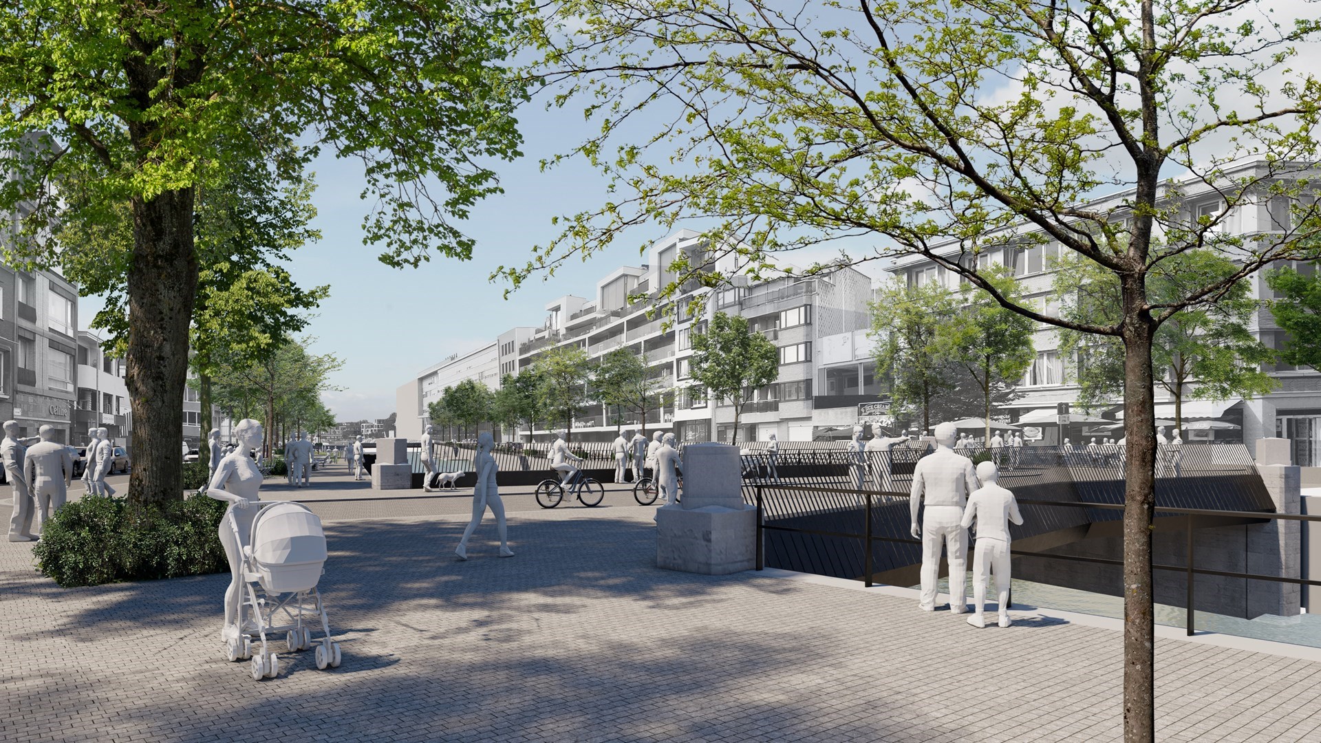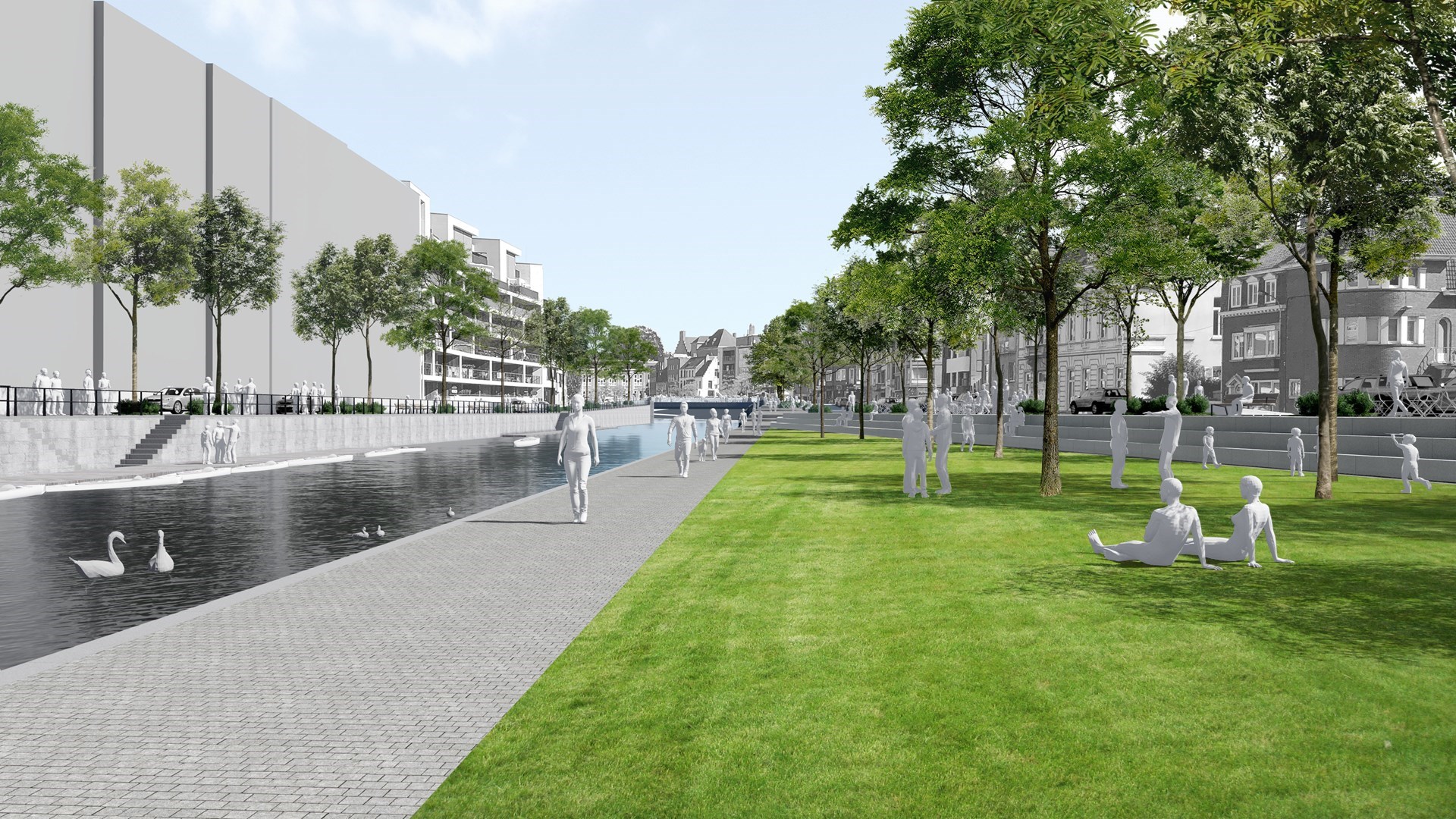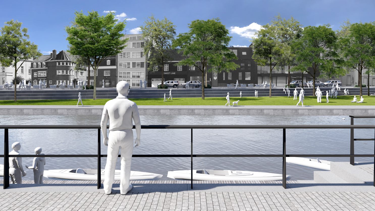 "Voor het ontwerp werken we opnieuw samen met landschapsarchitect Michel Desvigne en studiebureau Arcadis die ook de verlaagde Leieboorden aan de Broeltorens hebben ontworpen. Zo zorgen we voor continuïteit, kwaliteit en samenhang in onze stadsontwikkeling en publieke ruimte. De uitgangspunten van het ontwerp zijn: ontharden, vergroenen, waterplezier en ontmoeten", vertelt Wout Maddens, schepen van stadsvernieuwing.