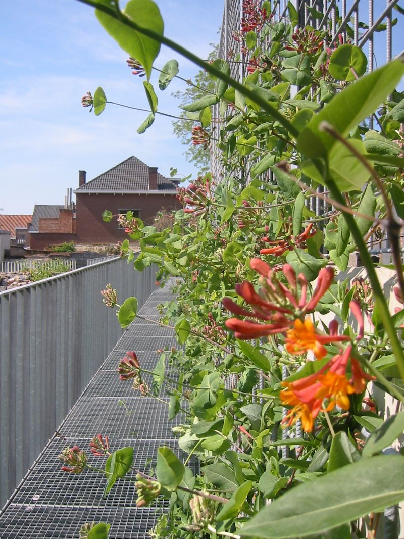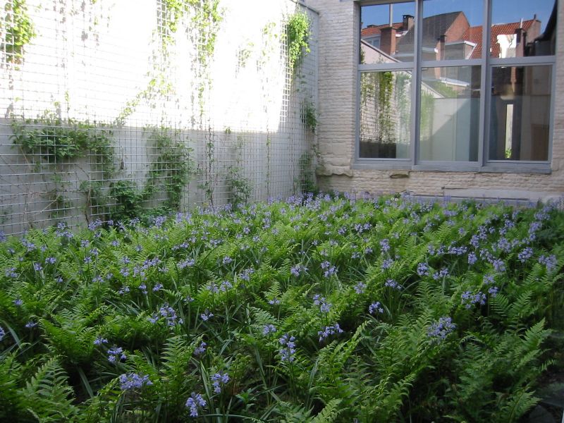 “We hebben het geheel opgevat als een soort sprizzatura, een bestudeerde wanorde. Hiervoor gebruikten we onder meer kruidachtige muurvegetatie en enkele klimplanten. Voorts vind je er fruitbomen terug en buxusmassieven als groenblijvende accenten in de binnentuin. De vroegere begraafplaats is nog steeds aanwezig, met daarbij arduinblokken en gedichten van Roland Joris. Tot slot fungeert het gras als een bindende groene mat die aansluit op het tapijt van verhardingen in baksteenklinker, kassei en grind,” aldus Buro voor Vrije Ruimte.