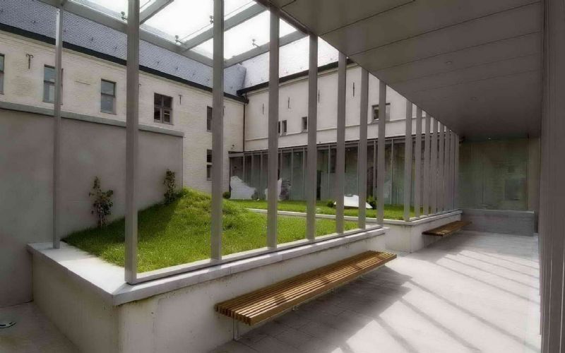 Door de 19e-eeuwse afbraak van de kloostergang die de centrale binnenhof omsloot was het voormalige klooster zijn structuur kwijt. Bij de restauratie heeft Architectenbureau Michel Janssen een nieuwe eigentijdse kloostergang gemaakt met slanke stalen kokerprofielen en daarop een dunne dakplaat. Op deze manier ontstond een functionele verbindingsgang en tegelijk werd de binnenhof opnieuw ruimtelijk afgebakend als het hart van het klooster. Die strakke stalen gang verbindt nu de historische kloostervleugels en maakt er opnieuw een leesbaar geheel van.
