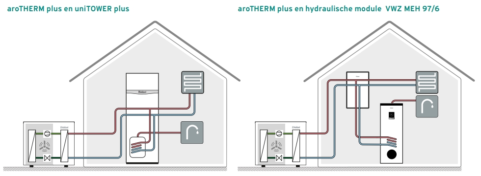 De compacte warmtepomp wordt buiten geïnstalleerd en kan gecombineerd worden met een uniTOWER plus hydraulische toren of een hydraulische module VWZ MEH 97/6. Dankzij de hoge vertrekwatertemperatuur heeft de eindgebruiker geen elektrische bijverwarming nodig voor de bescherming tegen legionella. Bovendien kan de temperatuur van de boiler tot 70 °C bedragen. Bij deze sanitair warmwatertemperatuur en met zijn opslagcapaciteit van 190 liter levert de uniTOWER plus voldoende warm water voor een gezin van vijf.