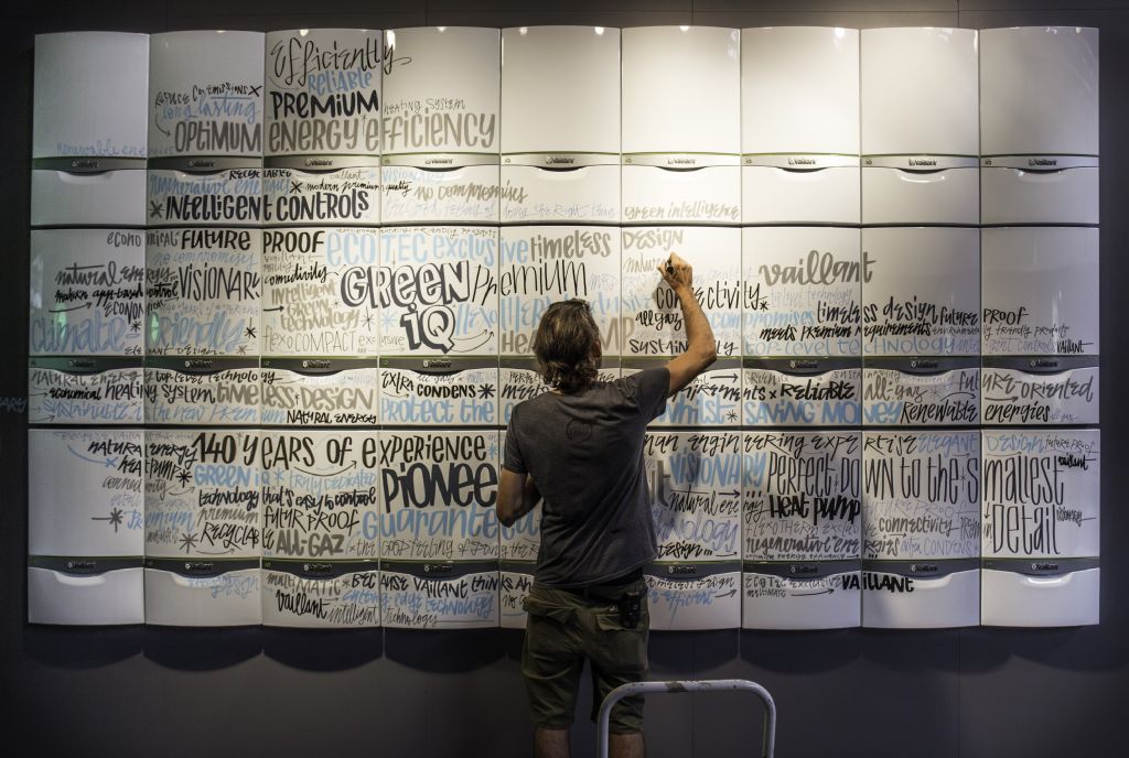 In zijn stand op Batibouw plaatst Vaillant een reuzegroot ecoTEC exclusive Green iQ frontpaneel met daarbij vijftig verschillende Engelse woorden. Vaillant nodigt iedereen die langskomt op de stand uit om de creativiteit de vrije loop te laten en een eigen compositie samen te stellen. Met magneten kunnen bezoekers op het frontpaneel een leuke, aangrijpende of opmerkelijke slogan of quote samenstellen. Vervolgens nemen ze bij hun compositie een verrassende pose aan, die de automatische Vaillant-fotobooth vereeuwigt.