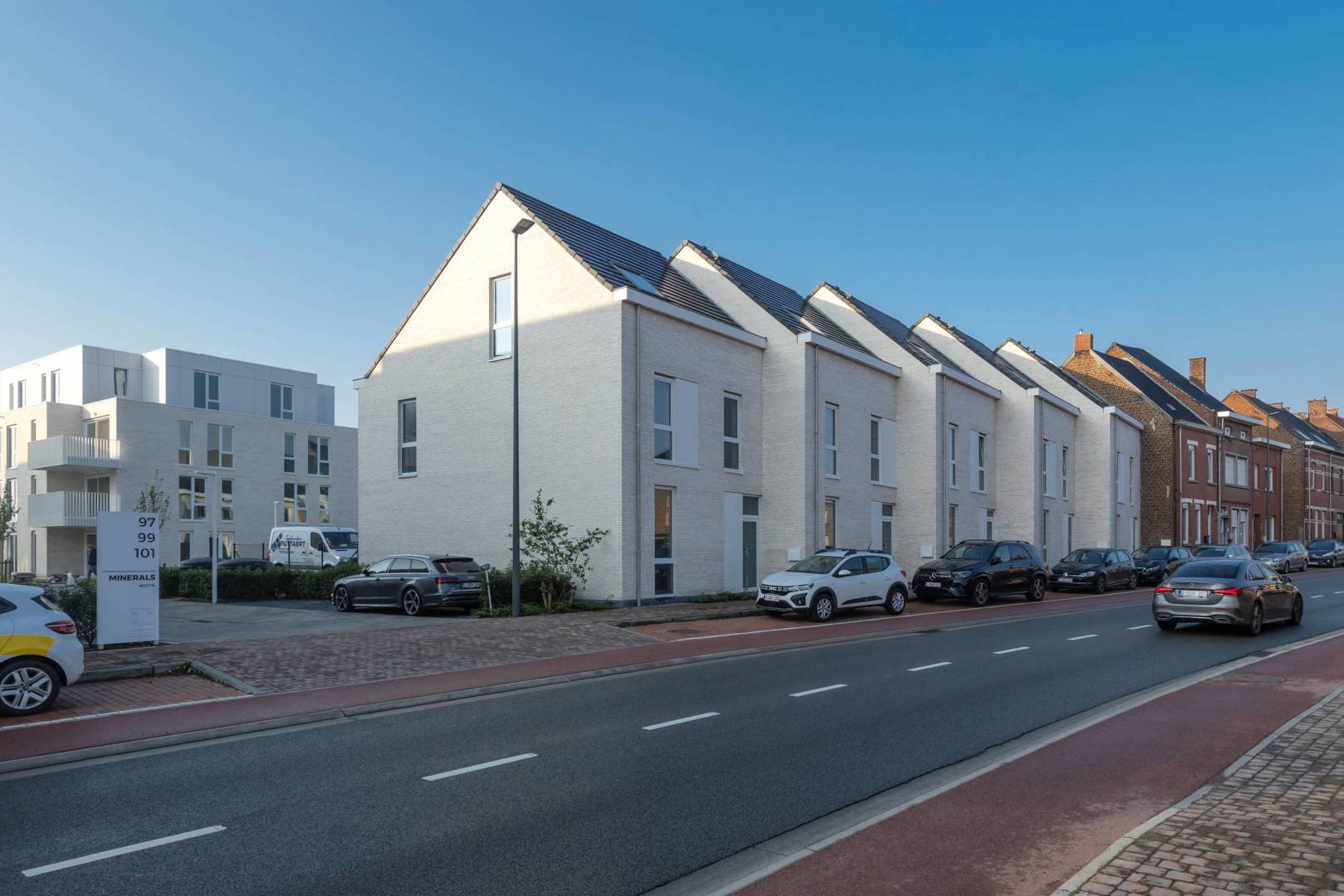 Aan de rand van Ronse, waar de stad overgaat in de Vlaamse Ardennen, realiseerde Edward Sorgeloose Architectuur het project Minerals in opdracht van Vesta Development. De ontwikkeling omvat 52 woongelegenheden: drie urban villa’s op een ondergrondse parking en vijf grondgebonden woningen die de straatwand vervolledigen. Doel was om betaalbare en kwaliteitsvolle woonentiteiten te combineren met een doordachte inplanting en veel open ruimte.